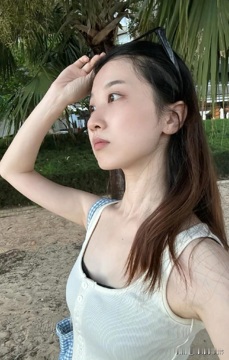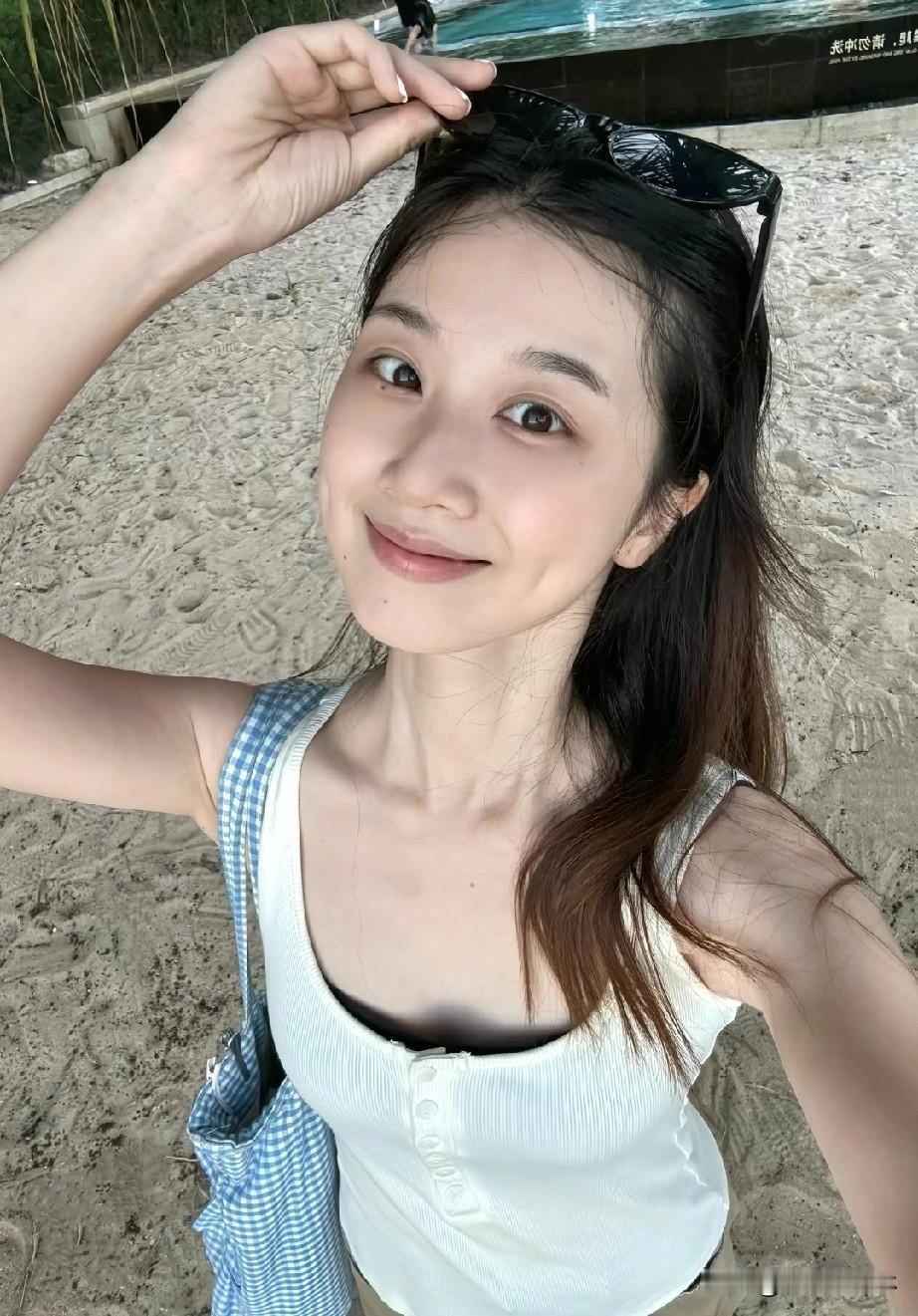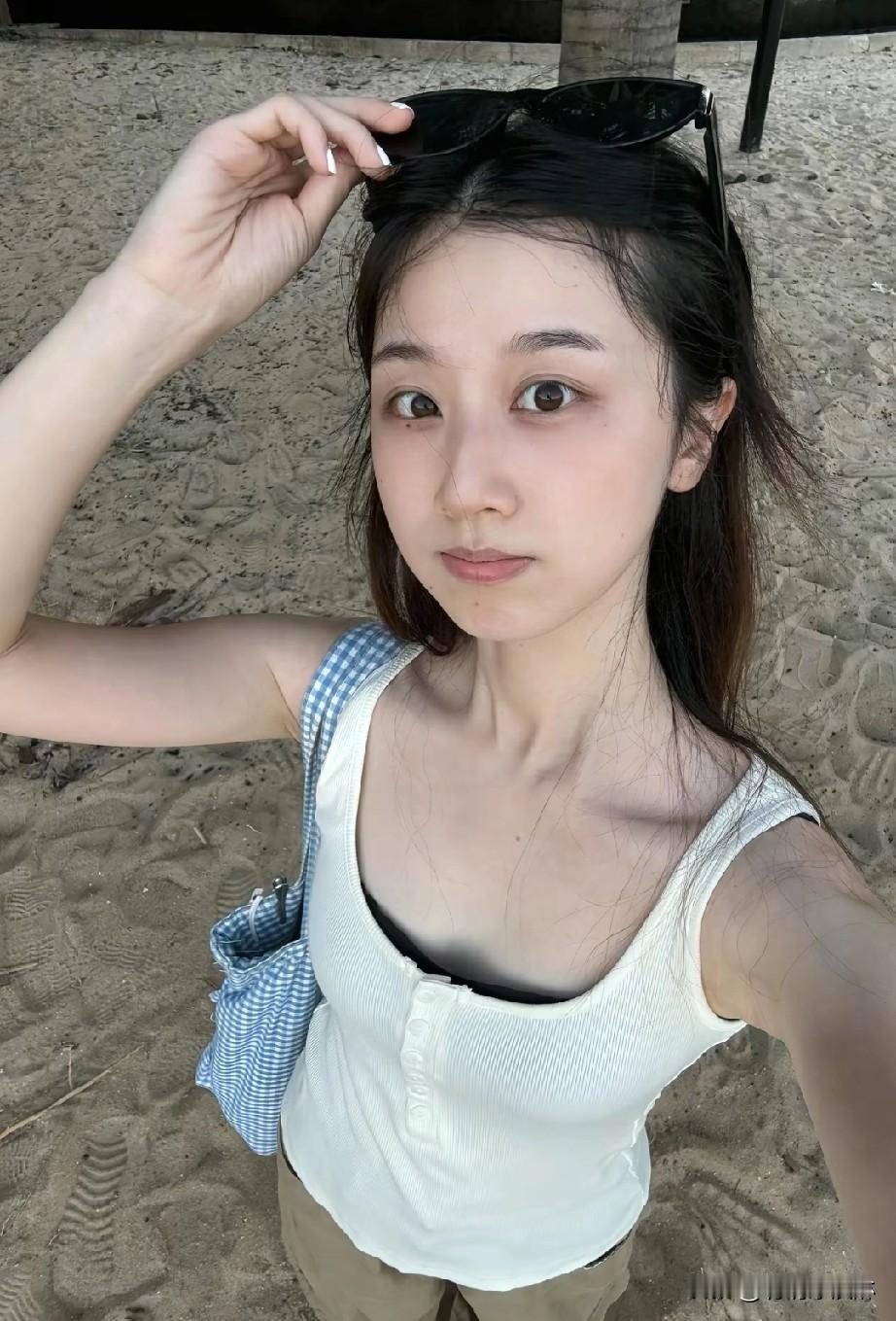 沙滩上的甜美自拍,阳光明媚,心情晴朗!