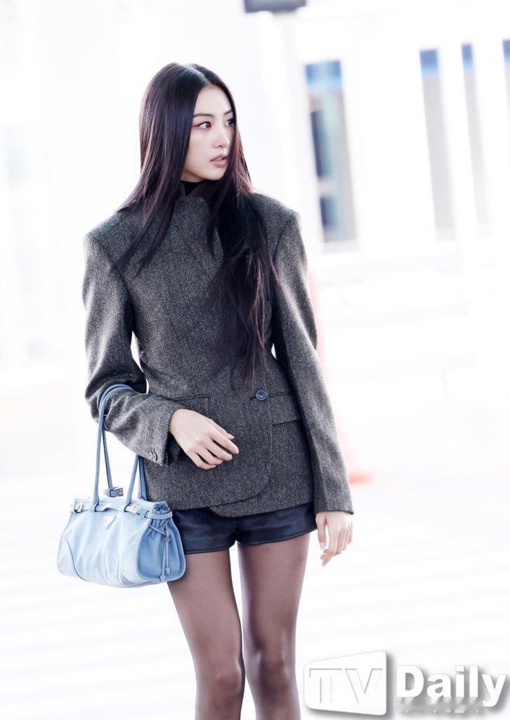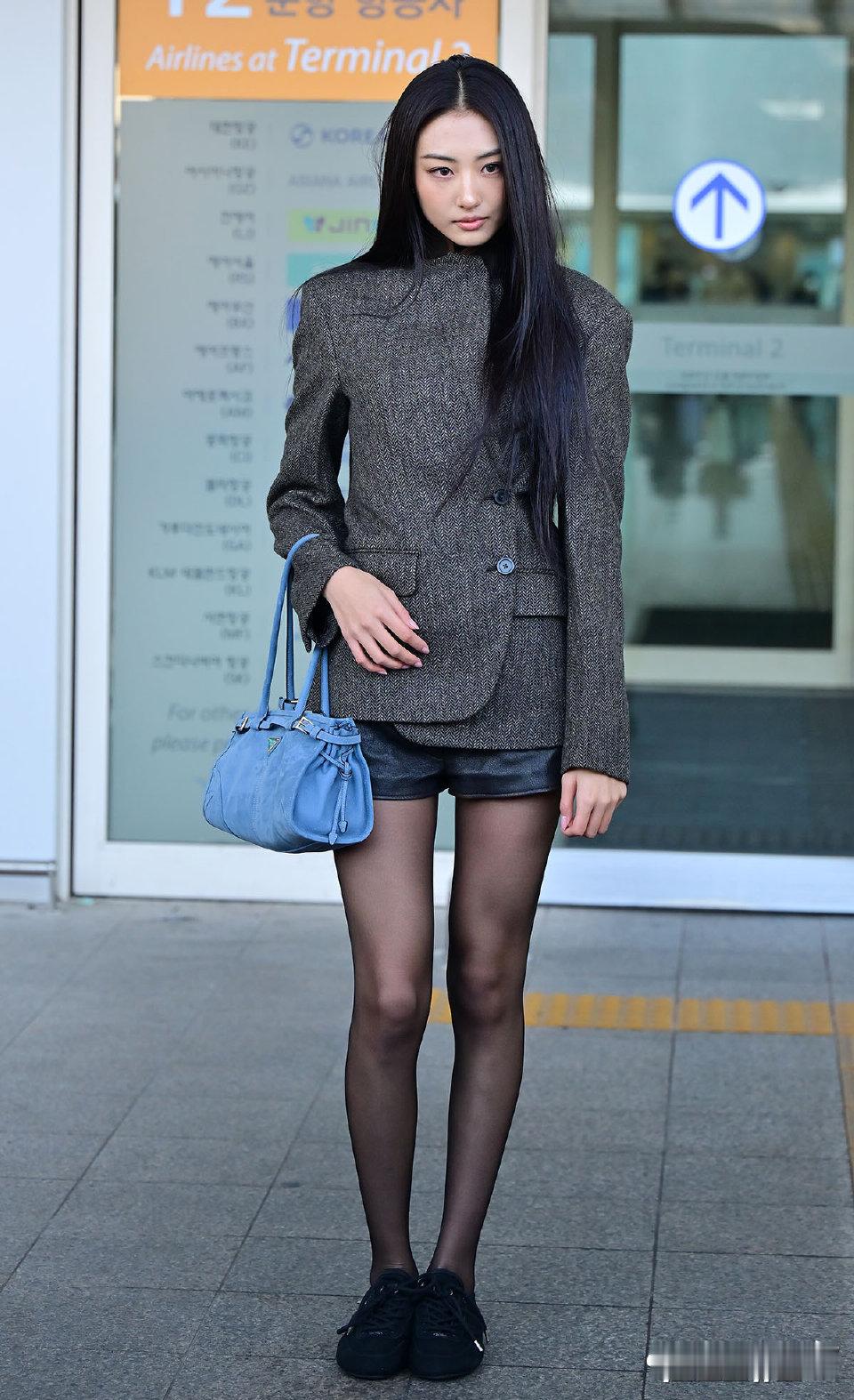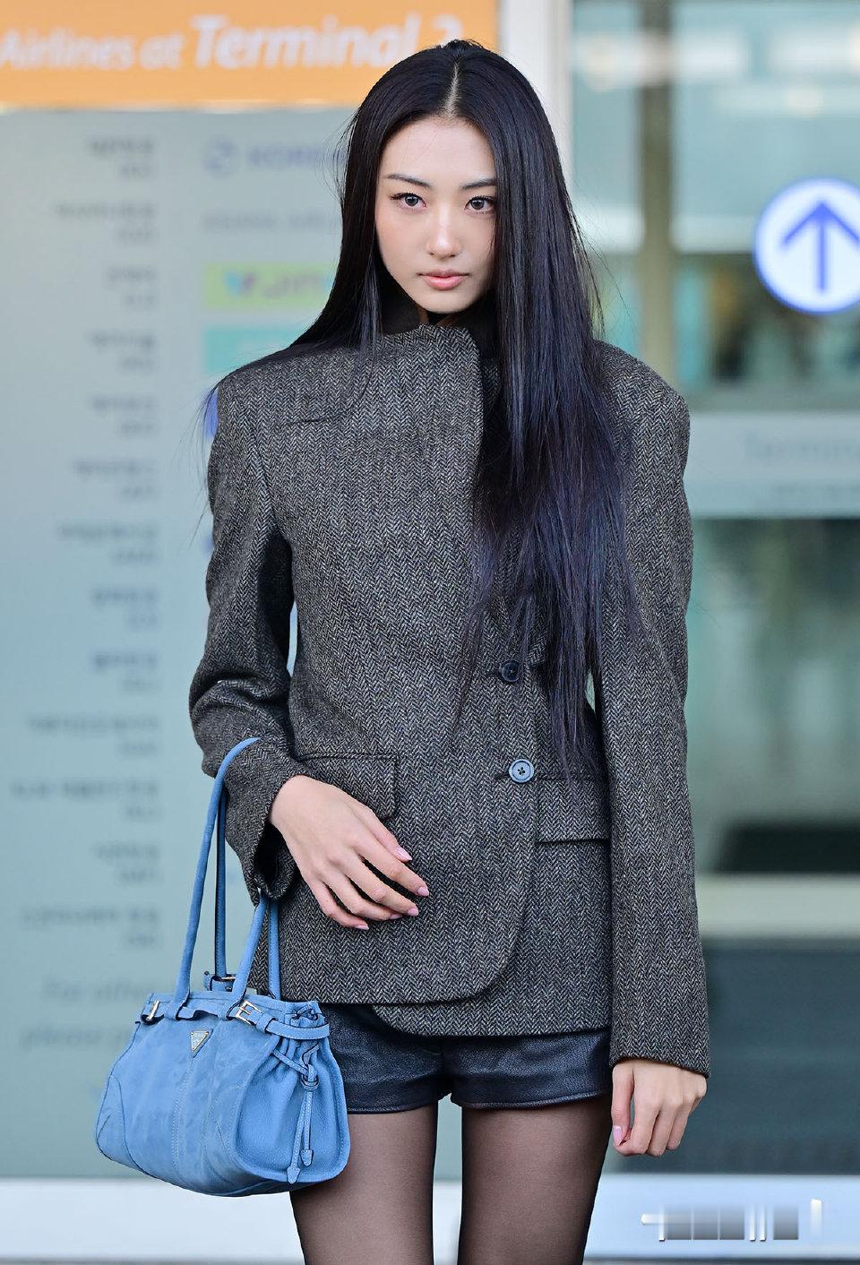 米兰男装周|机场出发照Gawon —— PRADA 2026秋冬男装大秀又一位Prada 女郎启程米兰! 现身即带货的能力依然在大力发挥,这枚蓝色绒面复古的Prada Bonnie手袋直接吸引住目光,西装外套也不走常规穿法,将驳领铺平及西装扣子扣紧既挡风又增加帅气值,机场随手一拍就是画报。男装周