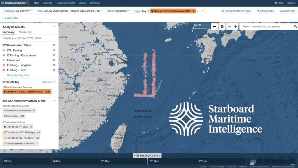 纽时称依据海上船只定位资料分析,中国渔船在去年圣诞节及今年1月11日,两次在东海