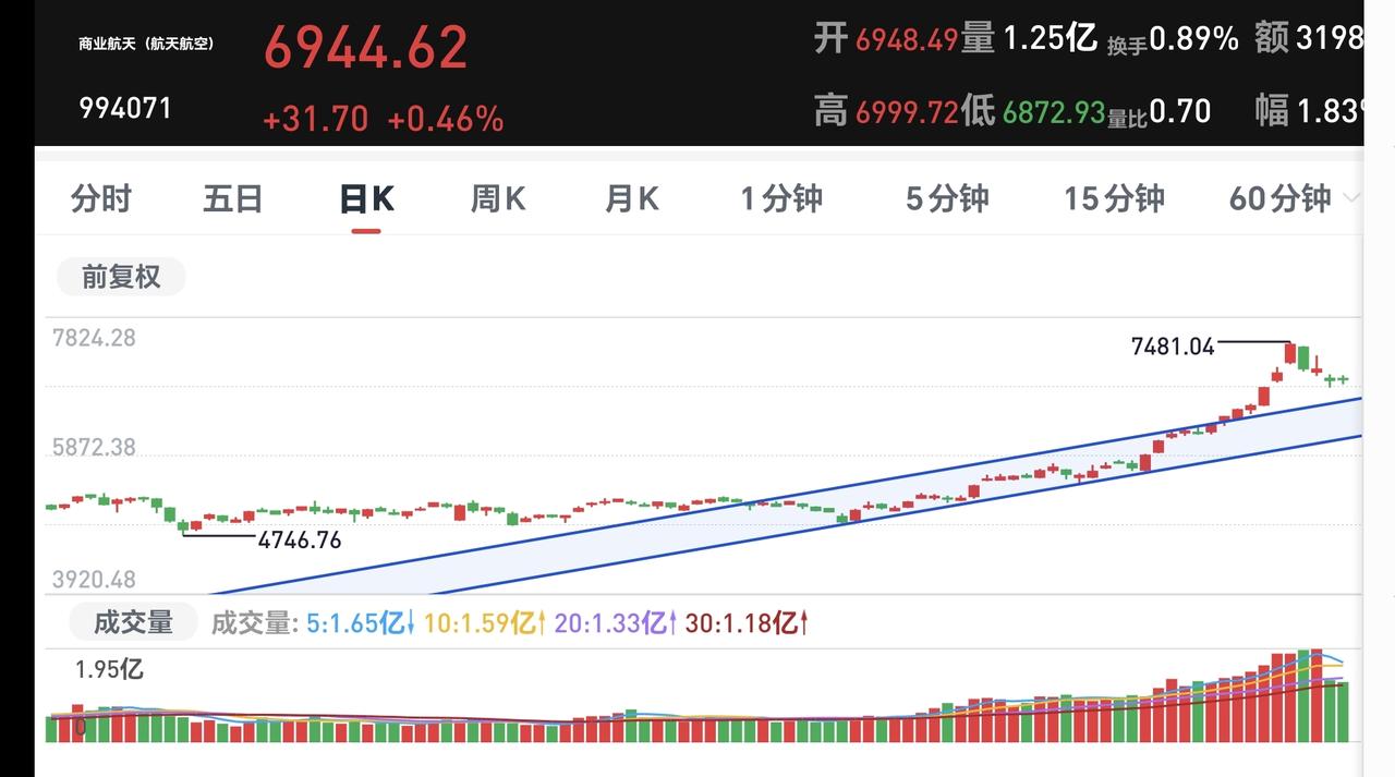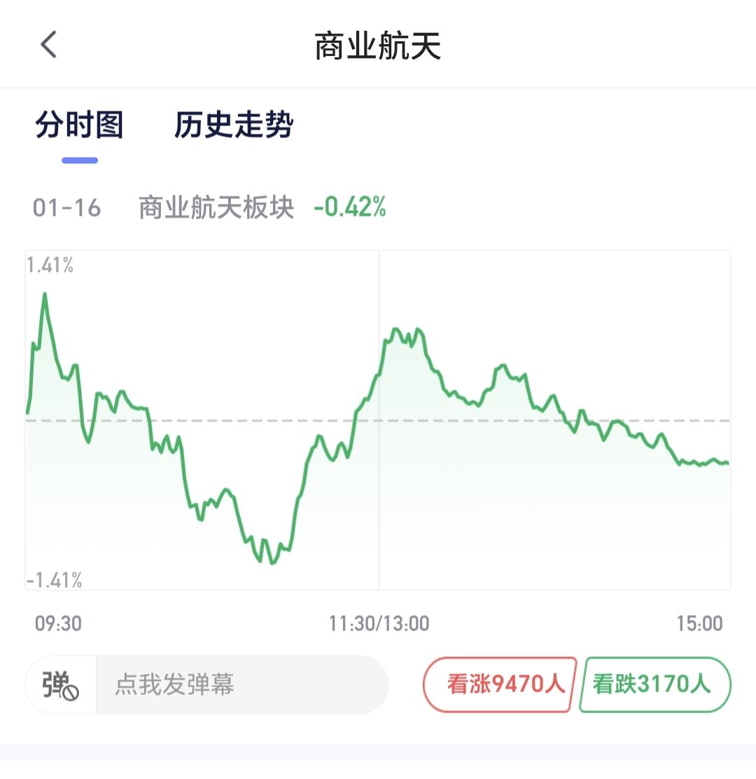 基金:商业航天板块应该怎么办 今天中午12点08分,谷神星二号民营商业运载火箭在酒泉卫星发射中心点火升空,火箭飞行异常,第一次飞行试验任务失利,见下面的截图8。 今天凌晨0点55分,实践三十二号卫星发射也是失利,见下面的截图1,一天当中两次发射失利,有许多人说要追责,我认为: 1:现在能够让你知道发射的失利,已经是很大的进步了,如果从保密起见,不让你知道,你也就什么都不知道了,这一次的即时公布,是自信的表现,是祖国强大的表现。 2:有人认为,现在的发射失利多了,事实上并不是这样的,只是现在的发射次数多了,从概率的角度来说,同样的失利概率,发射的次数越多,失利的次数也就越多。 3:凌晨的时候,我们大部分人都在睡觉休息,而那些科学家们却在发射现场熬夜工作,发射失利是很正常的事情,没有多次的失利,哪里来的稳定成功,即使是失利了,也不应该追责,有哪一个科学家是愿意失利的,只要找到失利的原因,避免以后再一次失利,就是最大的成功。 商业航天板块最近的走势非常好,但上周五下跌了0.42%,是连续第二个交易日下跌,这个板块的持有人数在所有板块中排名第三位,说明这个板块里面的散户人数比较多。 这个板块加仓人数排行榜见下面的截图4,持有人数排行榜见下面的截图5,加仓人数最多的是平安中证卫星产业,持有人数最多的是永赢高端装备智选混合。 我们来看一下下面的截图6,这是商业航天板块日K线图,从图中可以看出,我画了两条倾斜向上的斜线,这是商业航天板块日线级别上涨通道,前段时间上涨突破了上涨通道的上轨,后面进入了加速上涨的走势,这段时间是震荡调整走势,但这个震荡调整也只是上涨通道的回归,并没有改变日线级别的上涨趋势,持有的人可以继续持有,除非跌破这个上涨通道的下轨,才可以考虑要不要止盈出来观望。 我们来看一下下面的截图7,这是商业航天板块周K线图,从图中可以看出,我画了两条倾斜向上的斜线,这是商业航天板块周线级别上涨通道,上个星期加速上涨,突破了这个上涨通道的上轨,本周是高位区域震荡,是在上涨通道上方的震荡,这样的震荡并没有改变周线级别的上涨趋势,只要不跌破这个上涨通道的下轨,就还是处于上涨趋势中,持有的人就可以继续持有。 有人说,今天的两次发射失利,会让这个板块下周一大跌,我认为不会这样的,即使下跌,也不会是因为这个失利,现在的下跌,最根本的原因就是前段时间上涨幅度太大,上涨多了自然会跌,如果一直上涨,它就会像卫星一样涨到天上去,这是不可能的事情。 许多人需要解决的还是惯性思维问题,见到上涨了,就认为会一直上涨,见到下跌了,就认为会一直下跌,有些人还需要解决点赞的问题,看了文章,他就是不点赞,看了文章,他就是不评论,看了文章,他就是不转发,看了文章,他就是不收藏,大家认为,对于这样的人应该怎么办? 我每天都会分享我的观点,我的观点只代表我个人的看法,不能作为你操作的依据,据此操作后果自负。