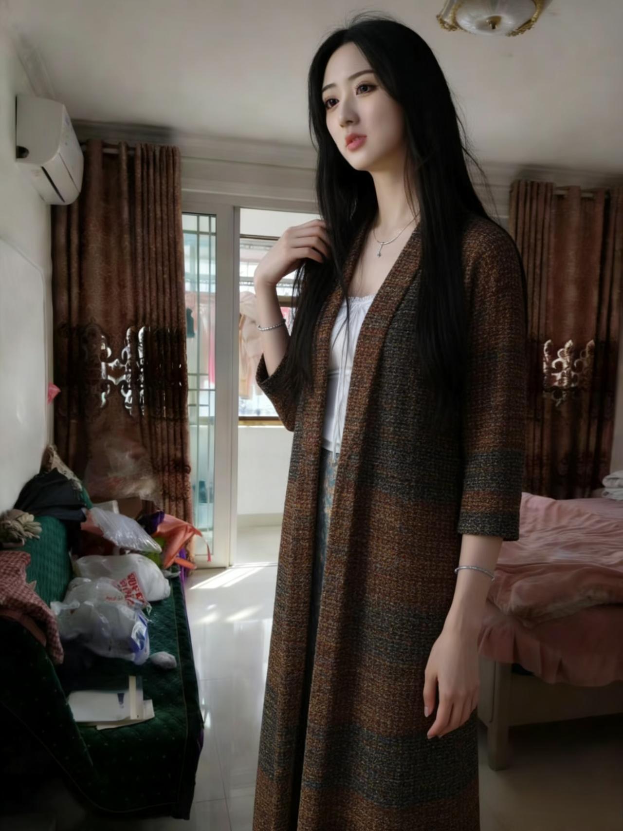 褐锦长衫裹素腰,窗前立尽影飘摇。 拈丝不语思千里,目断秋云过碧霄。
