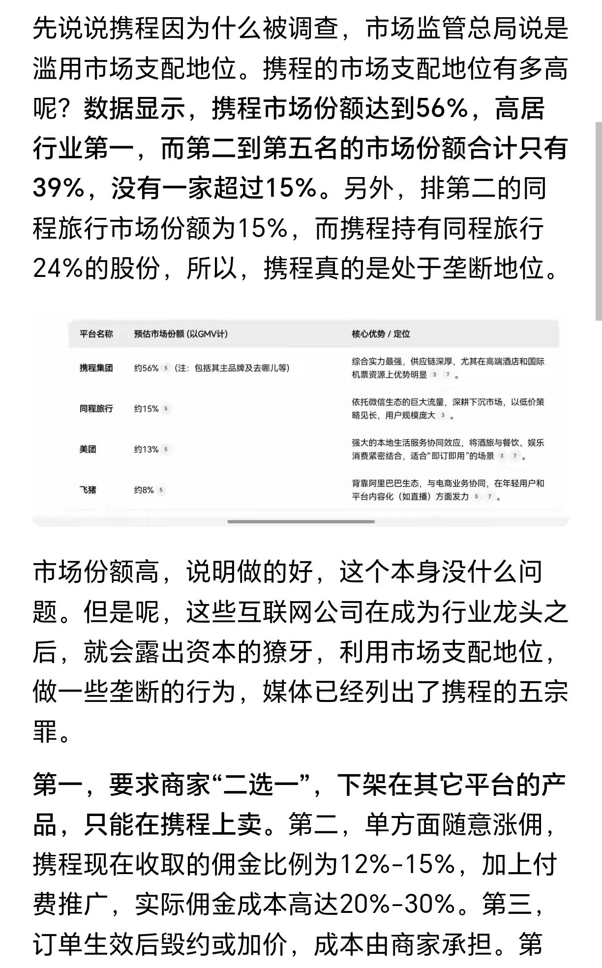 携程吃相太难看了,它的高利润,是建立在用自己的占据56%市场份额的平台优势来对用