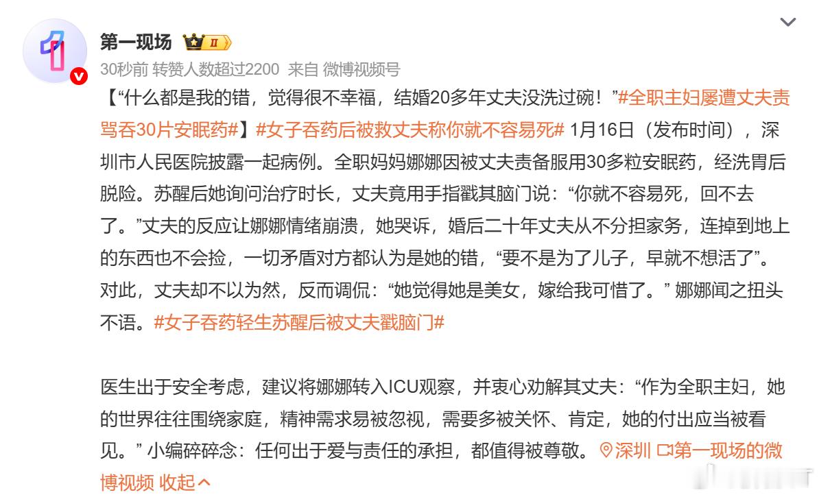 全职主妇屡遭丈夫责骂吞30片安眠药 一看就知道她根本不懂法。要知道,法律对全职主妇是有特殊保护的。只要提起离婚,就能以家务补偿为由,分走绝大多数共同财产。能有全职主妇的家庭,家境大概率不错。这么好的条件不利用,还搞什么吞服安眠药。岂止是愚蠢,简直是愚蠢。女子吞药后被救丈夫称你就不容易死