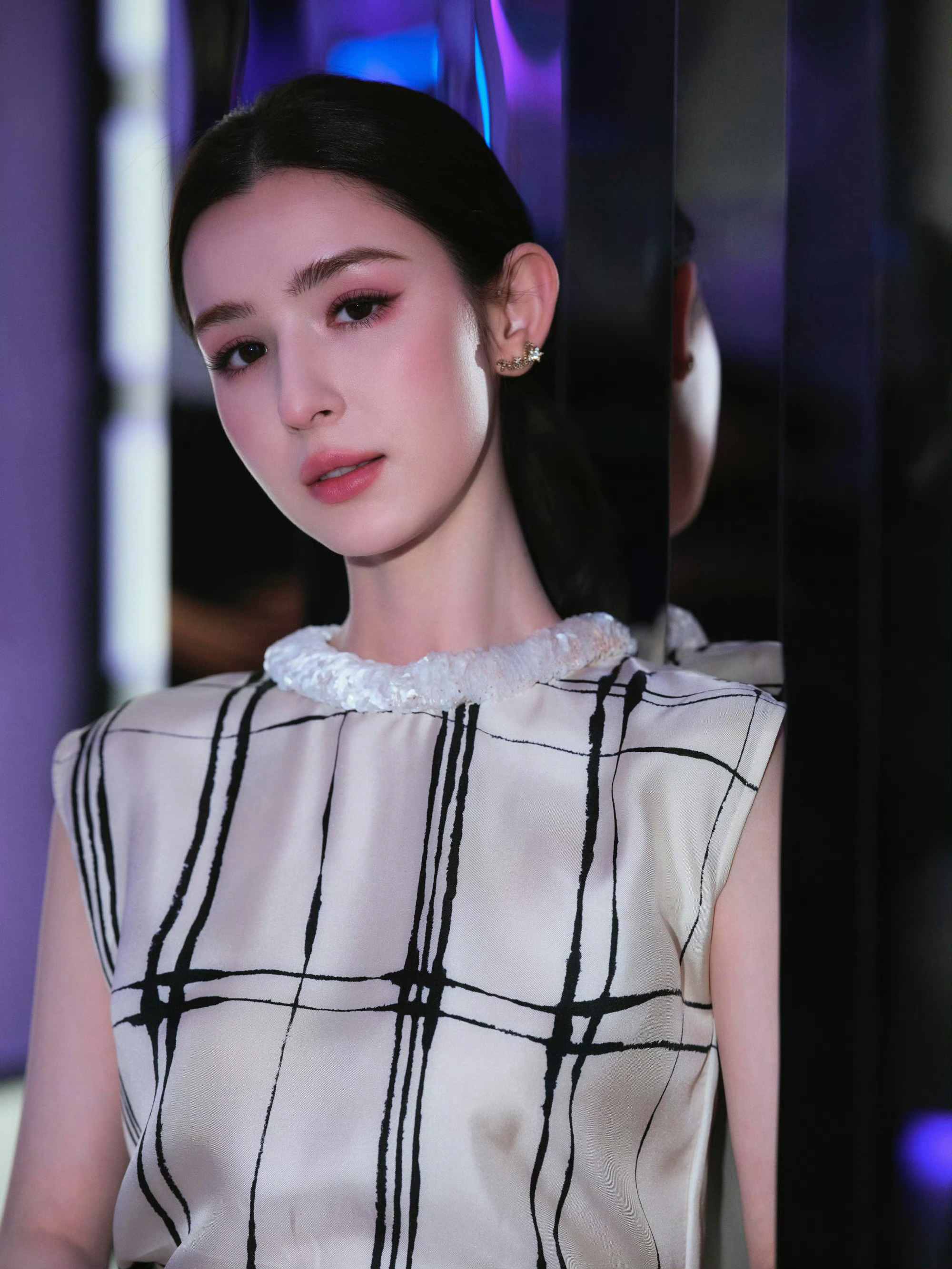 周也身穿赫本风黑裙亮相天猫欧莱雅直播活动