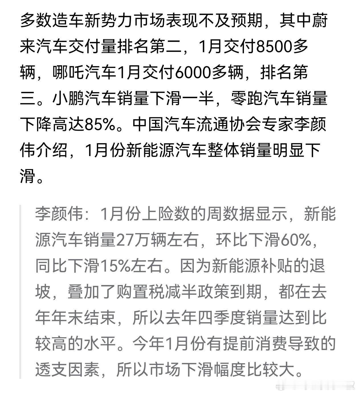 2023年起,新能源汽车购置补贴政策终止,一月份的销量也是惨不忍睹。