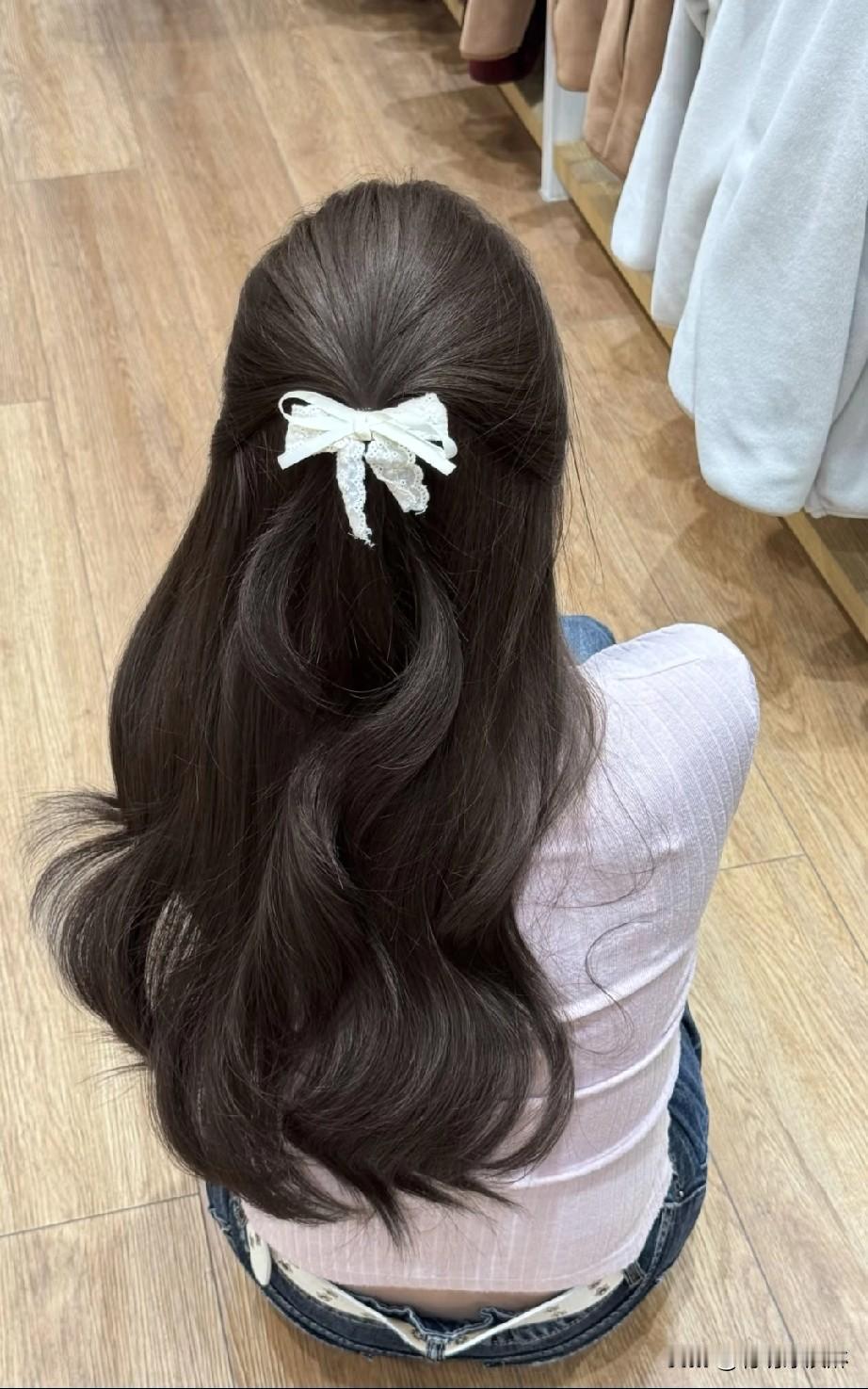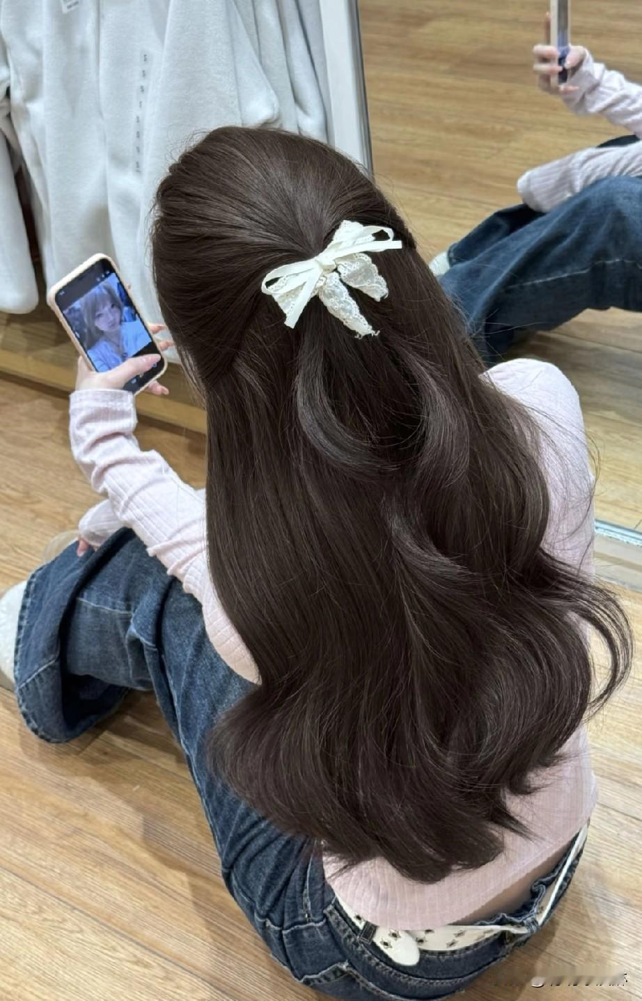 自家在家染发 头发质感也很不错, 随手扎个蝴蝶结 真的很有温婉精致感! 好喜欢哦~