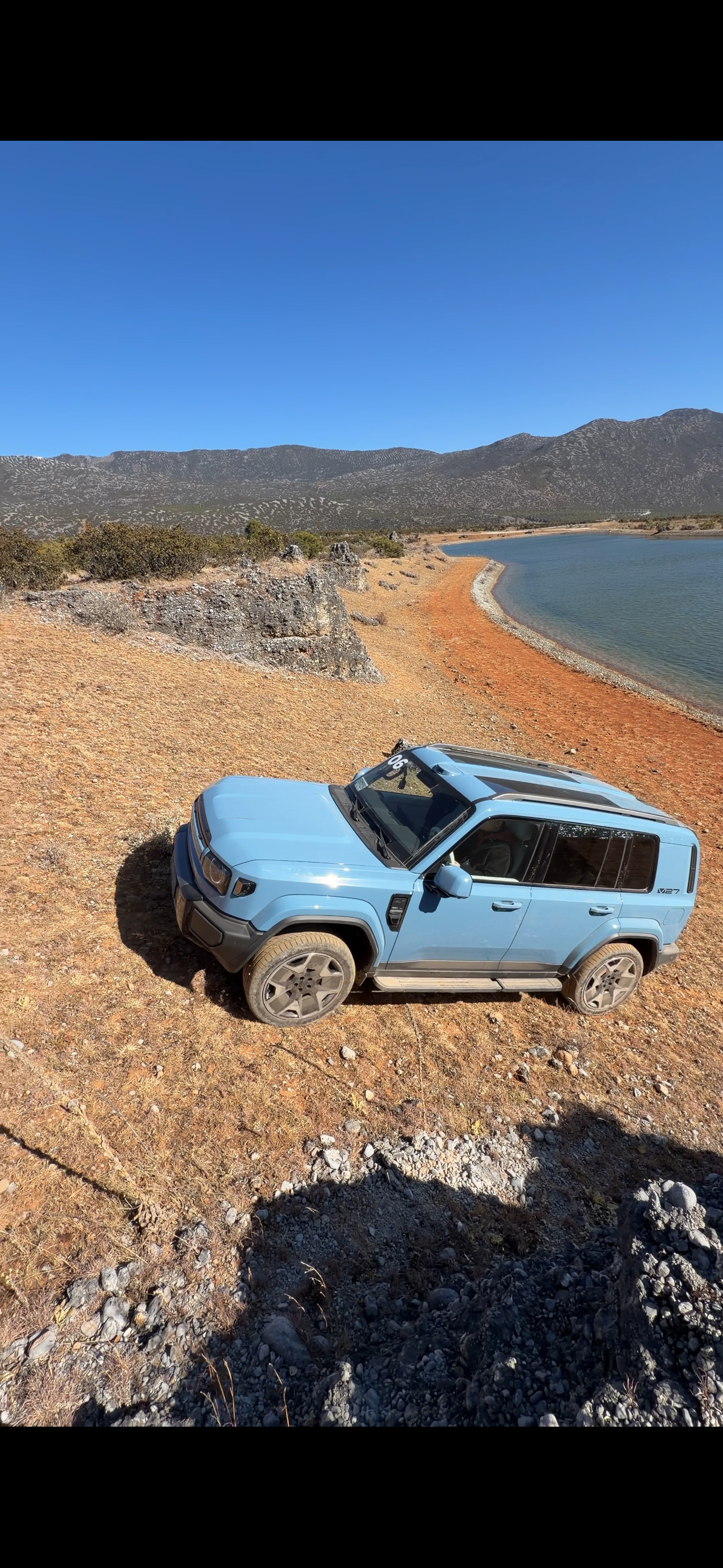 iCAR V27 这个蓝色,没有官名,但可以叫它:托斯卡纳蓝。别小看这个颜色,很有故事。1970 年,第一代路虎揽胜发布,广告车颜色就是托斯卡纳蓝。2020 年,揽胜 50 周年纪念版复刻了这个颜色,全球限量1970 台,中国 400 台。奔驰 G 63 也有一个这种车身颜色,叫“China Blue”,翻译叫:瓷器蓝,和托斯卡纳蓝很接近,中国限量 10 台。超级V23S 刚上市也有这个颜色可选,但很快就下线了,所以有这个颜色的 V23 也算是限量版了。v27全能硬派全家都爱大v聊车