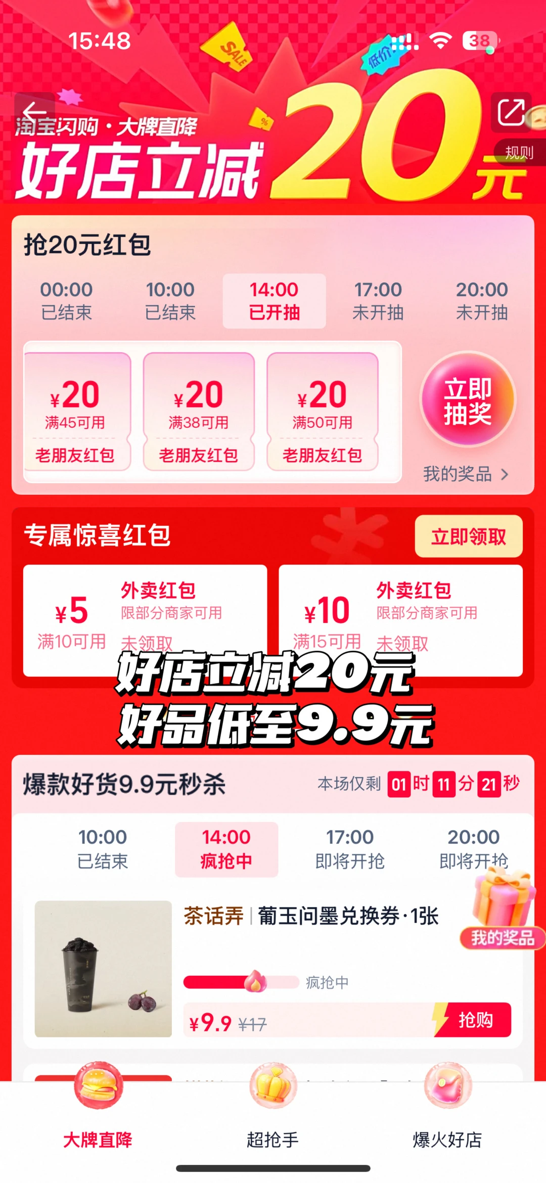 打工基础!打工餐就不基础!🤣 作为资深老吃家!同事都说能过我嘴的都是好吃的饭菜!!! 分享一下我收藏夹里无限回点的外卖! 好吃不踩雷!价格还实惠! ✔️探鱼自选口味现烤鱼柳单人套餐💰26.9r ✔️农耕记农家一碗饭香➕配菜➕例汤套餐💰21.8r ✔️秦哥哥长安凉皮新品小吃单人餐💰16.9r ✔️遇见小面新疆阳光番茄汤面+小吃💰22.9r 想点同款的,直接去淘宝闪购上搜【大牌直降】进入活动主会场! 好店立减20元 好品低至9.9元,这羊毛不薅简直亏大了! 而且都是大牌的东西,品质也不用愁,花小钱吃大餐的快乐谁懂啊!🤣 打工牛马不知道吃啥的直接冲就完事了!