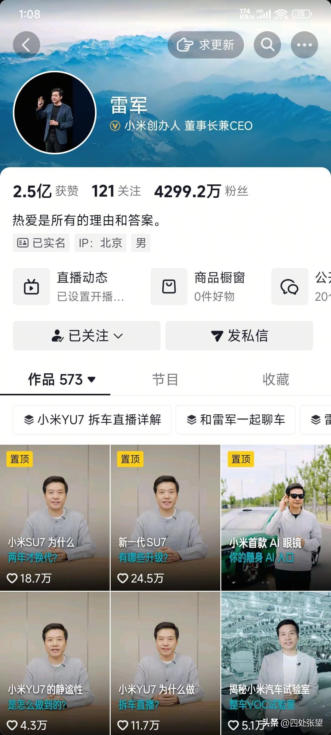 震惊,雷军又掉粉了!截止2026.1.17日中午1点,雷军粉丝已经跌破4300万粉,其实想想,感觉这是雷军的一场阳谋,小黑子们为了让雷军继续掉粉,分分取关,正中下怀雷军 雷军营销争议 雷军爆火发言 雷军脱稿直播