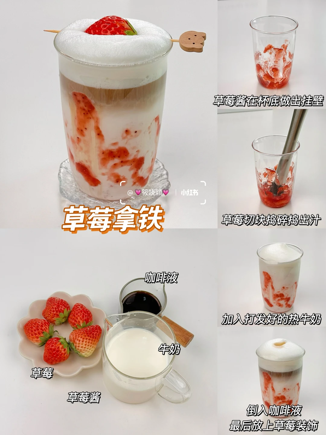 ①先用草莓酱做个挂壁,再放入草莓捣碎
