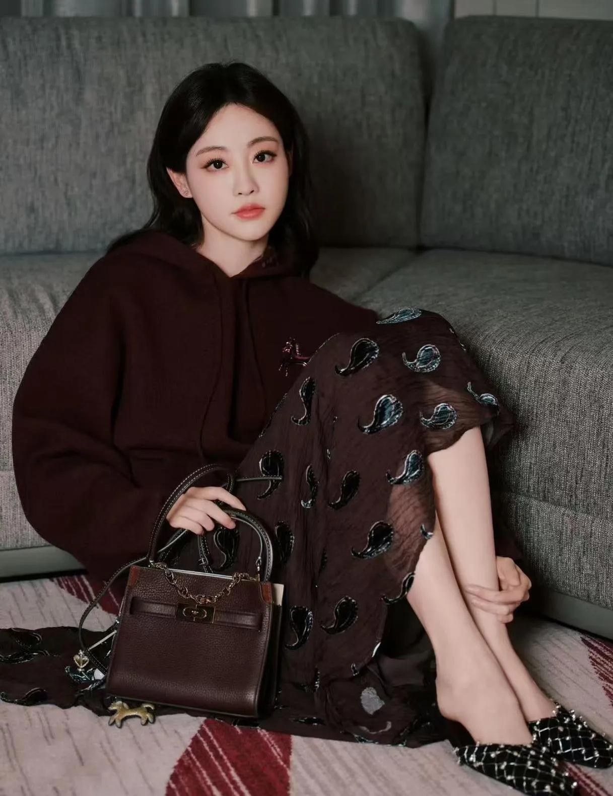 谁懂啊!祝绪丹的新风格太戳心了!酒红色自带温柔质感,卫衣+半裙的混搭把松弛感拉满,我直接抄作业!明星穿搭