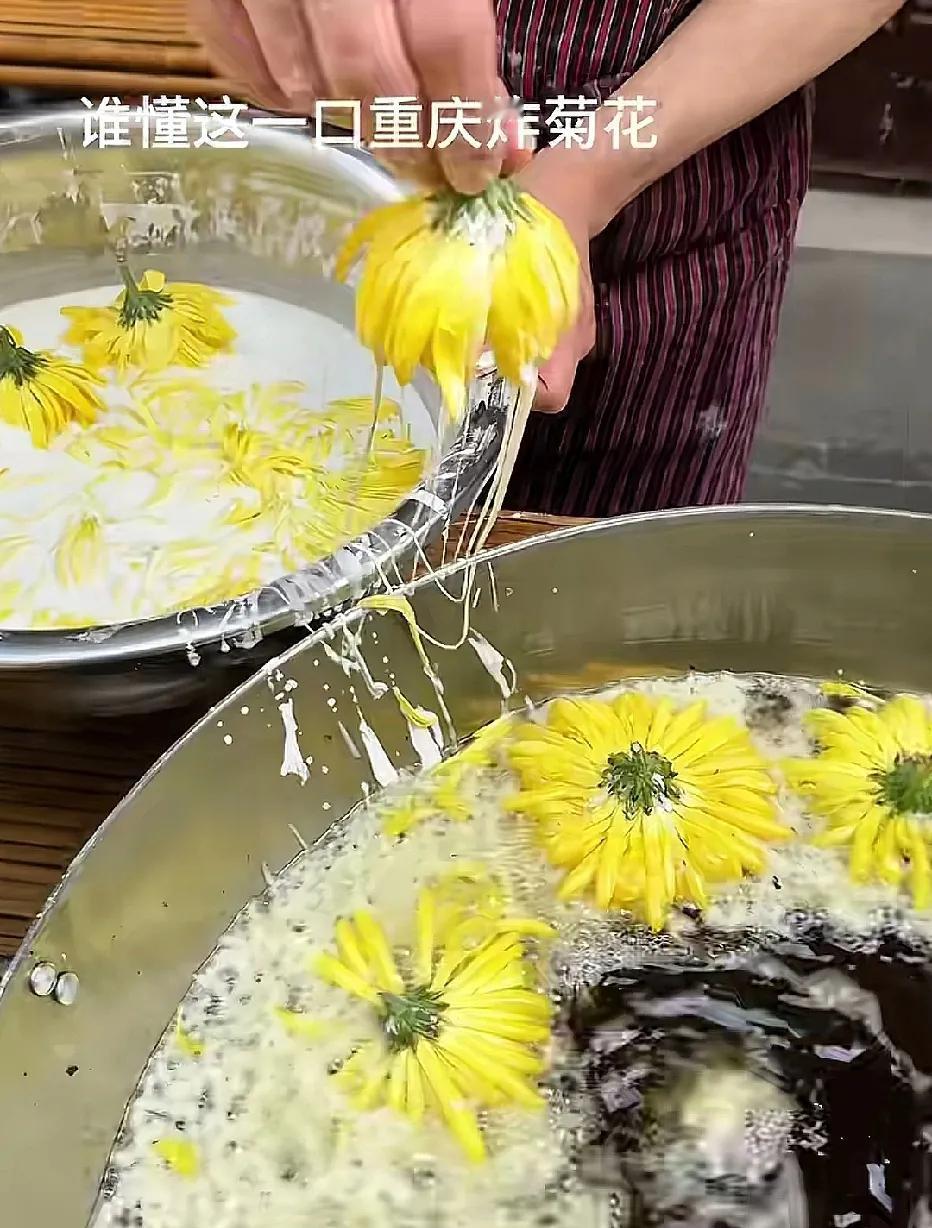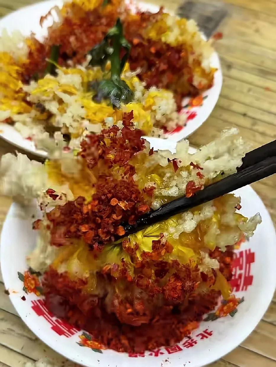 菊花不是泡茶的吗?原来还可以拿来炸着吃~长见识了!是不是很香这一口?