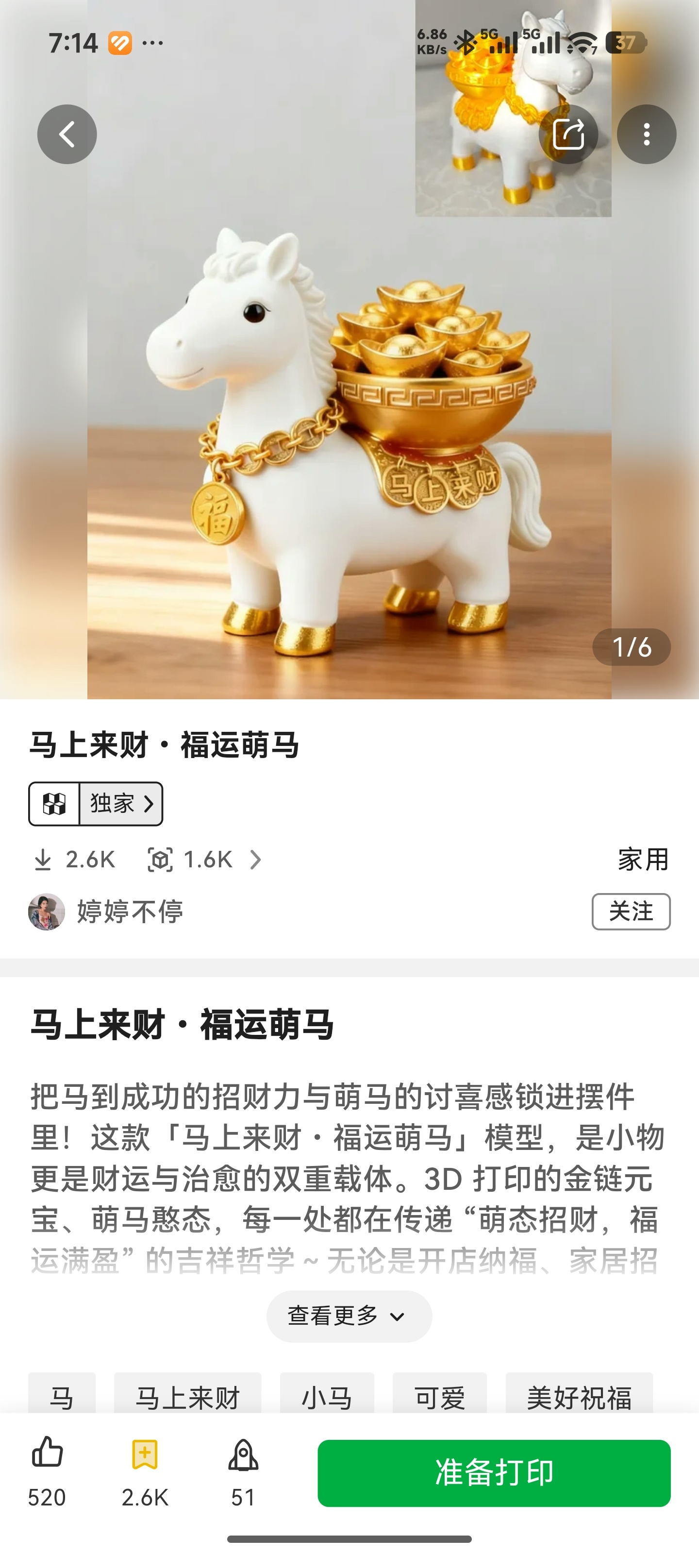 3D打印的 马上来财。成本只需要2块钱,桌面小摆件。可以选择顺毛或炸毛,元宝铜钱都可以免费上金漆。感觉好可爱哈哈。也可以做成大号的。模型是婷婷不停开源的。也可以找到代工。