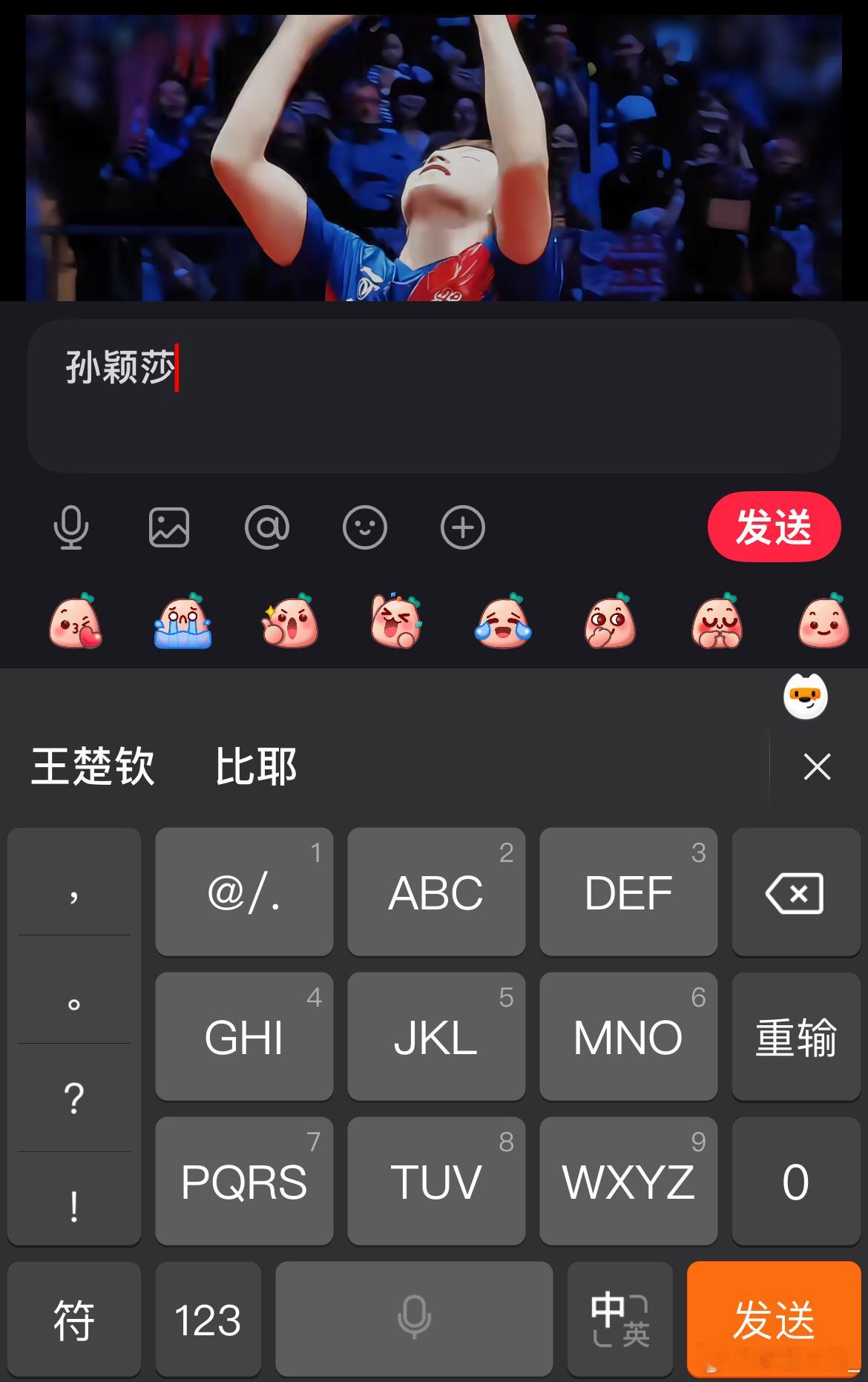天呐!我都不知道我的输入法还有这种功能,真的神了!我打出了孙颖莎,随后对话框就有王楚钦!我打出来王楚钦,随后对话框就有孙颖莎!我真服了!