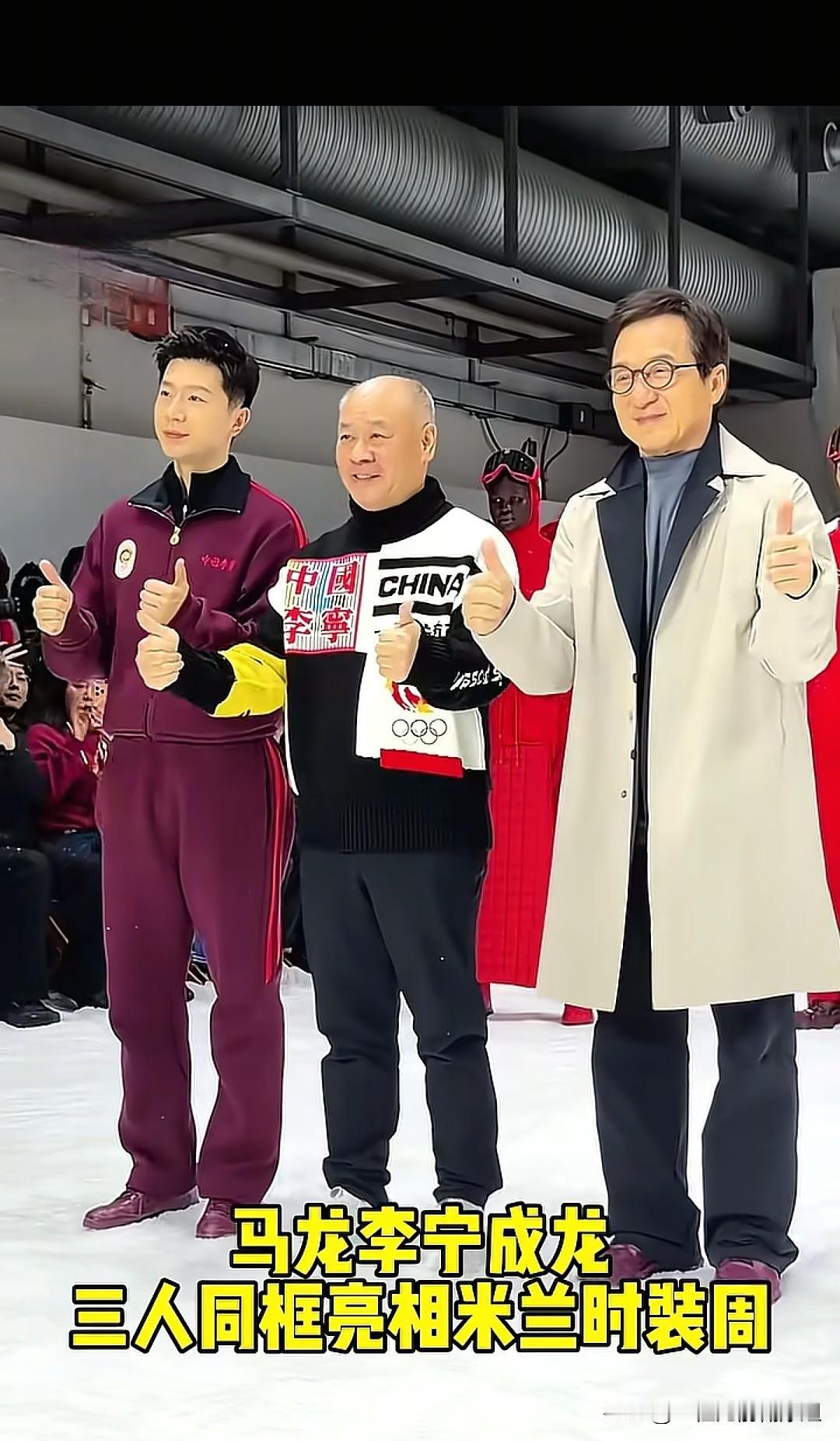没想到这三位传奇人物坐在了一起,看上去一个比一个有范啊。 看到他们仨同框亮相米兰时装周是不是很激动呀? 成龙大哥:奥斯卡终身成就奖得主 李宁王子:世界最佳运动员 马龙:双圈大满贯最年轻得主。 大家看看哪个最帅?或者是你最喜欢哪个?