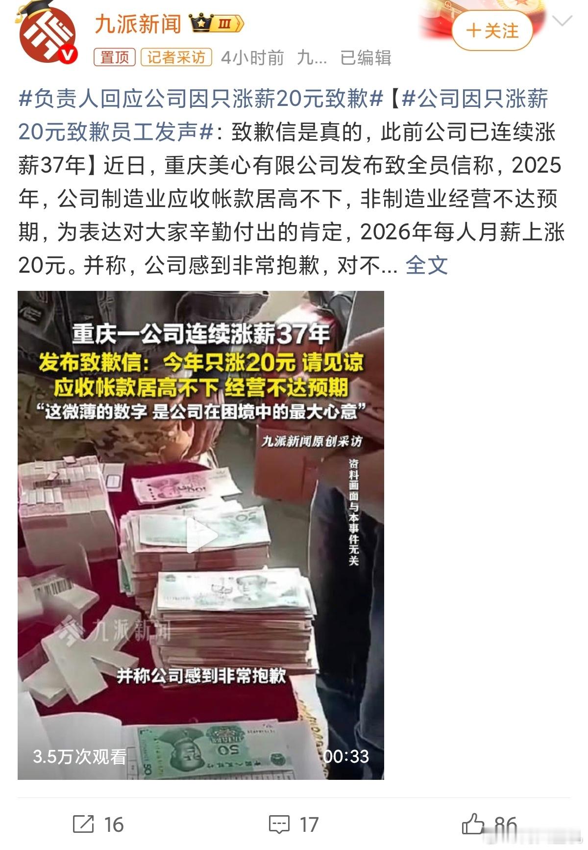 公司因只涨薪20元致歉员工发声可以了,现在各家公司都想的是裁员,降薪,现在这种大环境还能涨薪的公司已经不多了,看了一下,连续涨了37年,今年涨的少,还专门道歉,完全没必要,果然公司一对比,就体现出差距了。