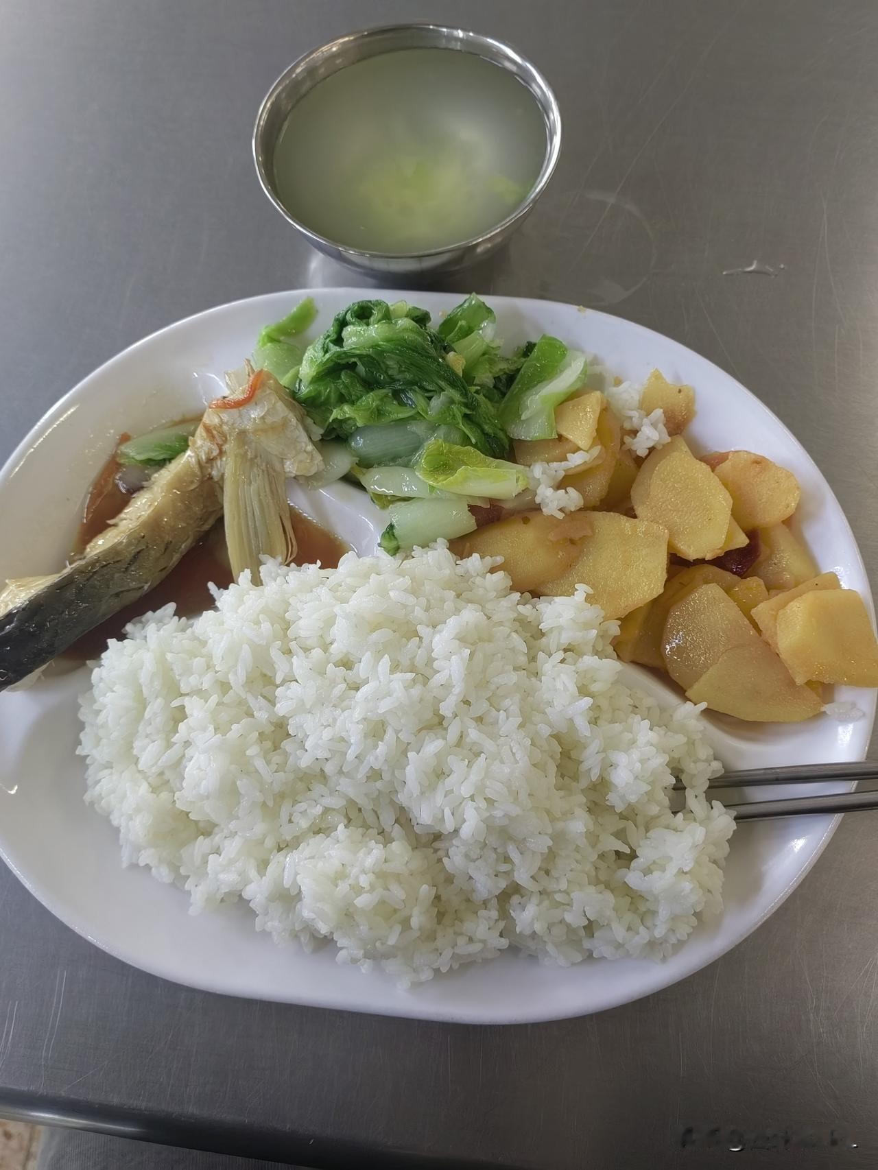早上没来得及吃饭,中午要多吃点了,公司九块五的标准餐,全部干光,难得吃的这么好。