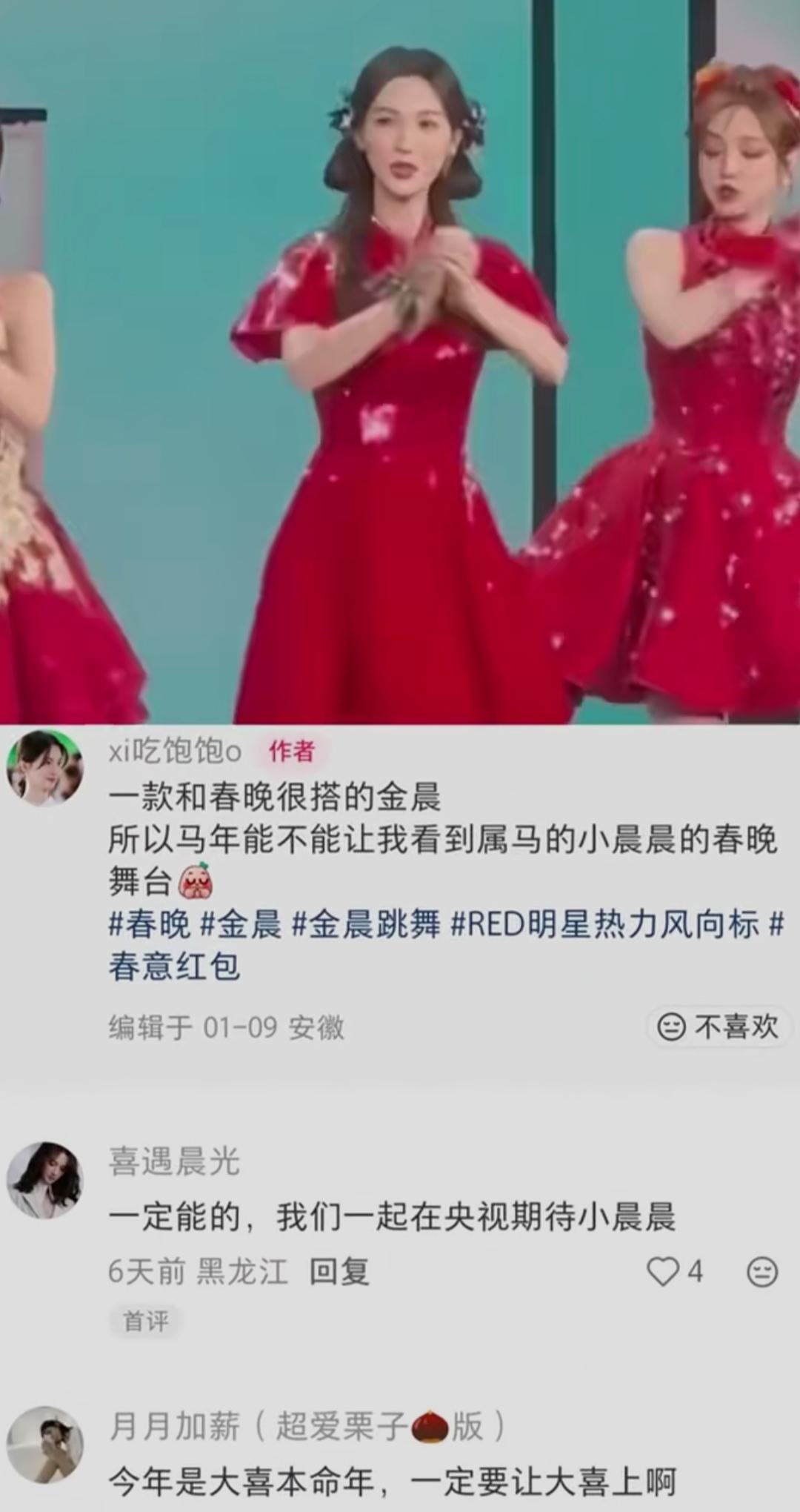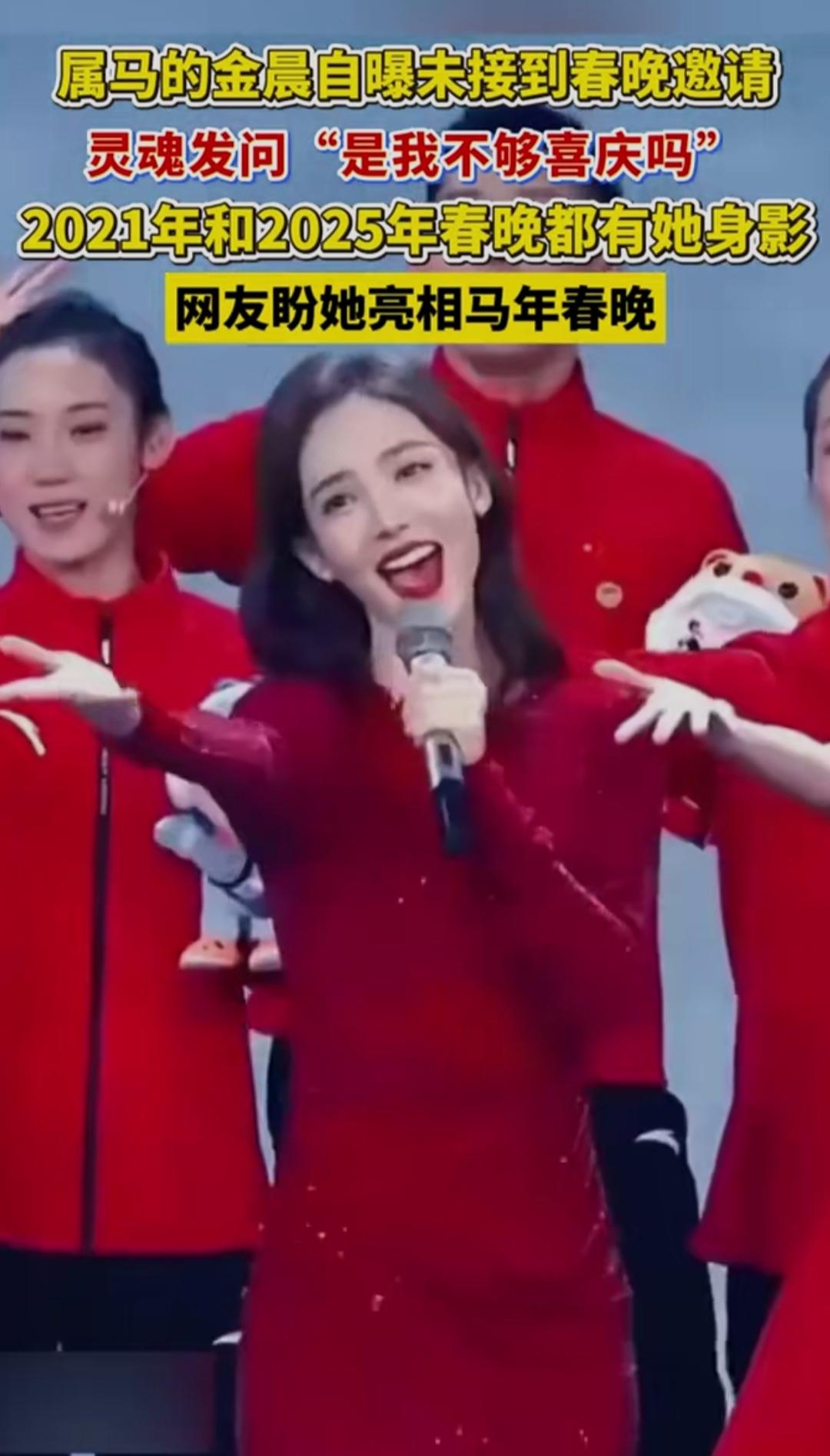 家人们谁懂啊!本命年遇上马年春晚,本以为是天选适配,结果属马的金晨居然自曝没接到邀约,还俏皮追问“是我不够喜庆吗”,这波真实不装的样子也太戳人了!网友看完直呼:这姐的松弛感真的绝了。 2026年1月15日,金晨在直播里耿直聊起春晚话题,一句自嘲直接引发热议。要知道她曾两度登上春晚舞台,去年表演《春意红包》时,不小心扔吉祥物砸中观众后慌张道歉的名场面,至今还是大家心中的“快乐源泉”。 今年春晚主题是“骐骥驰骋势不可挡”,更侧重推新面孔,宋雨琦、程潇等新生代已参与排练。而金晨近年重心转向影视,凭《孤注一掷》《庆余年2》收获不少好评,口碑一路上涨。 你觉得本命年的金晨该上春晚吗?她够不够“喜庆”适配春晚舞台?评论区聊聊~