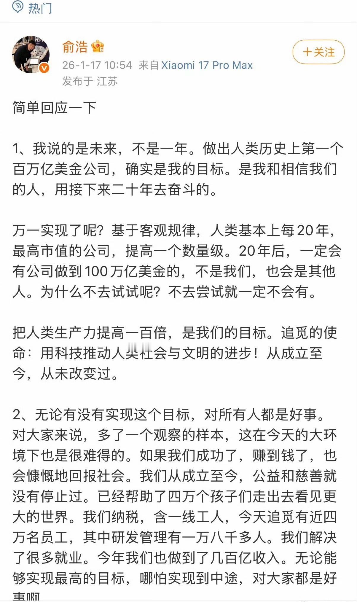 追觅CEO俞浩回应遭员工怒怼看他现在回的话,反而觉得他平时不是那样的人,朋友圈里那些,大概真是喝多发的。
