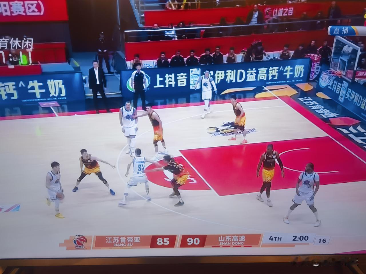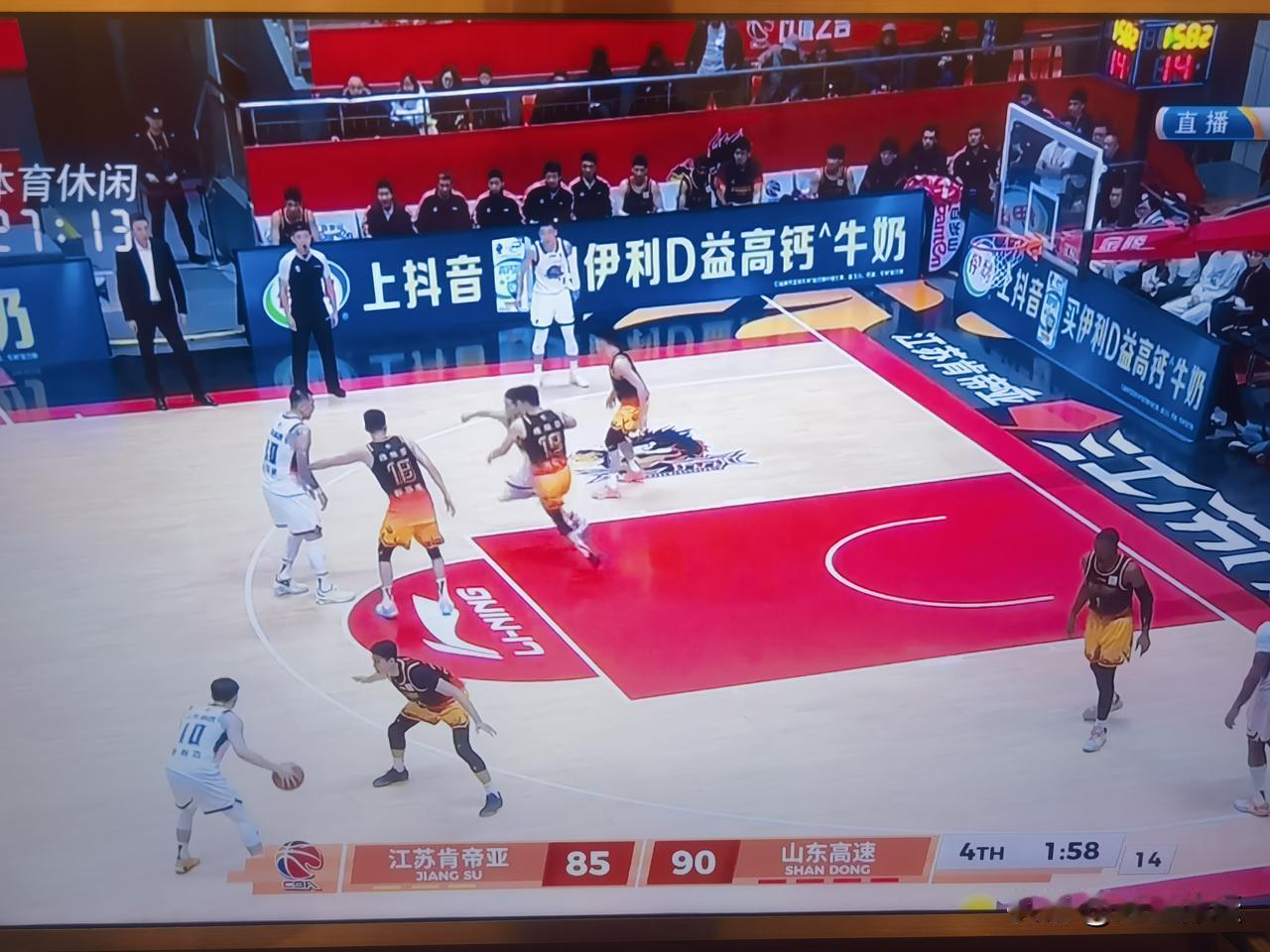 最后时刻,克里斯两次失误,一次犯规!山东高速男篮对阵江苏肯帝亚的比赛,最后时刻在