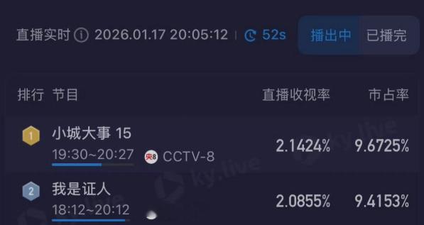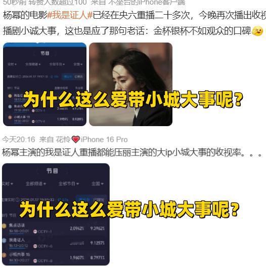 一个创下CCTV6今年18点开播电影酷云最低收视的我是证人有什么好骄傲的吗?你要不看看CCTV6,18点20开播的电影今年什么收视水平!居然在这里说小城大事!我对他们的电影什么的没什么兴趣,仅为了反驳主动带小城大事的这些网友罢了!