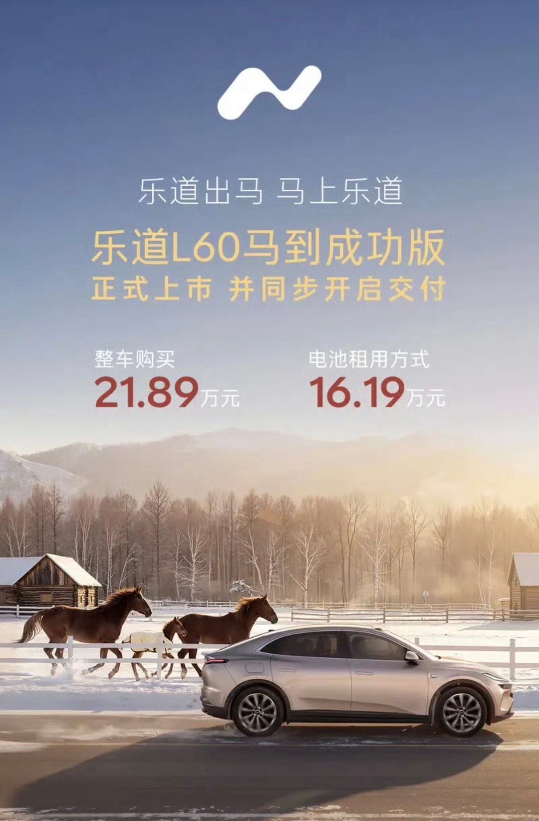 【乐道L60马到成功版正式上市 售价21.89万元】1月16日,乐道汽车官方宣布L60马到成功版迎来正式上市,整车购买方案售价21.89万元,电池租用方案售价16.19万元。官方表示,新车将于今日同步开启交付。