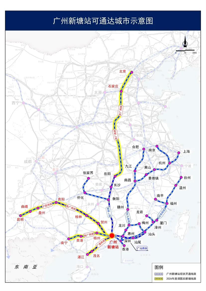 恭喜广州新塘站有了西向的高铁班次了,以后就近新塘片区的人要前往桂林、昆明、南宁等