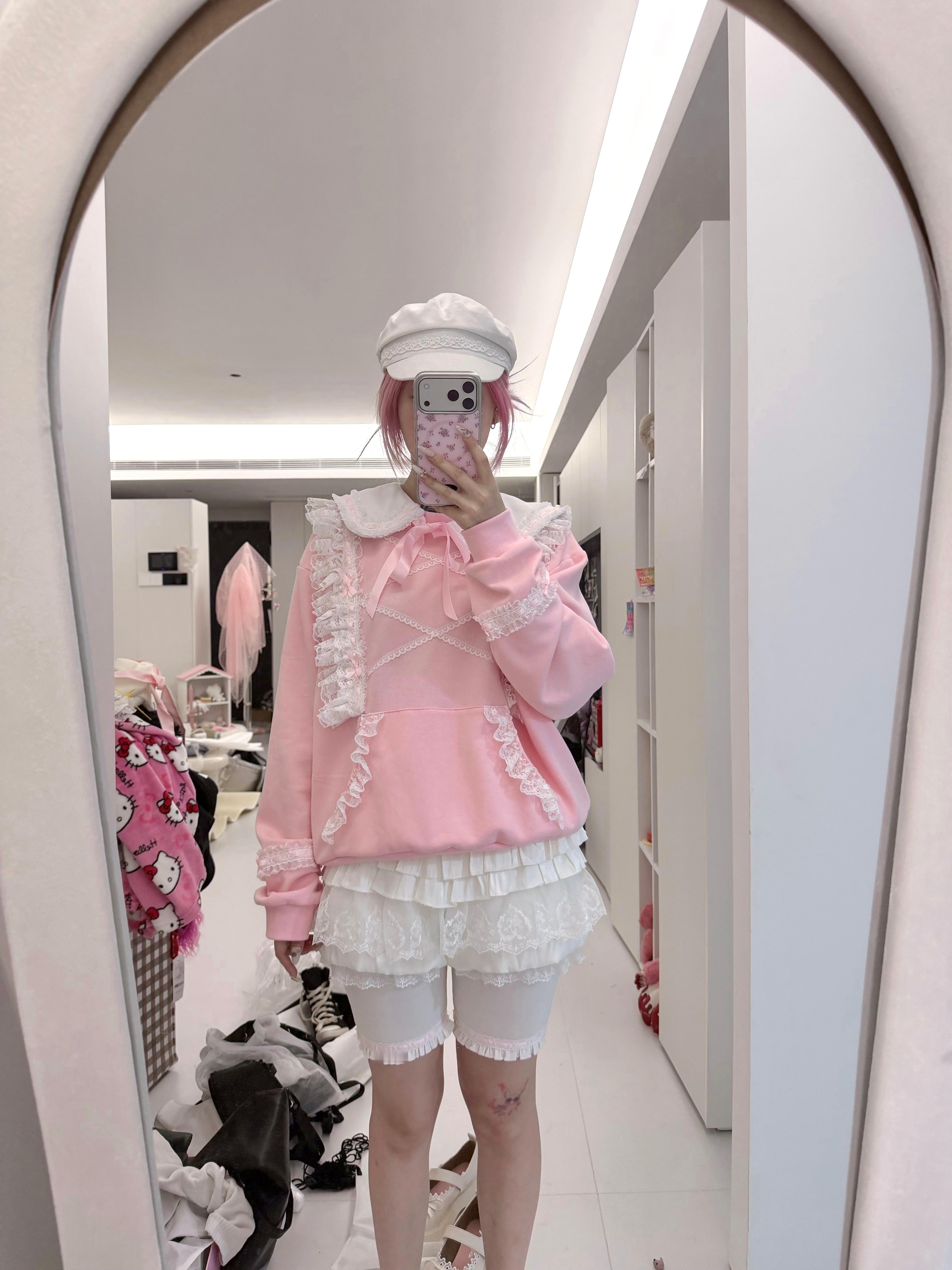 明天拍2026早春 在家先搭配一下嘿嘿春节前闪现一小波 都是年后可以穿的厚度 不会过厚(˶‾᷄ ⁻̫ ‾᷅˵) 所以大家放心选海军领卫衣还有套黑色 没在家里所以没拍 也超可爱的!(每次搭配都会把家里炸的乱七八糟一人…)
