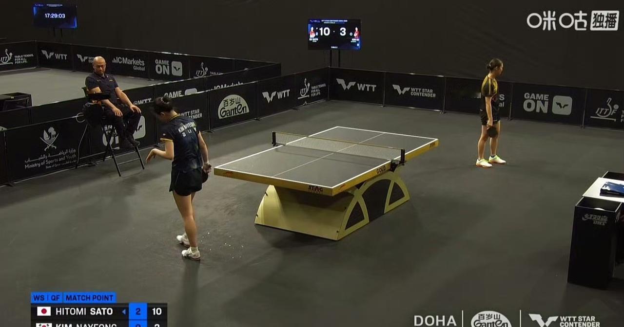 没人拦住她了? 28岁的佐藤瞳🇯🇵又来个横扫! 3-0一路碾压金娜英🇰🇷晋级2026WTT球星挑战赛多哈站女单四强,三局比分为佐藤瞳11-8,11-1,11-4金娜英(图三)。 零封小粽子、零封蒯曼、零封金娜英,佐藤瞳(图二)是一路零封上来的,不知道谁能拦住她。 和桥本帆乃香相比,东京周期佐藤瞳更出名,上过世界杯亚锦赛团体,也赢过主力,后面就沉寂了,巴奥周期桥本帆乃香更出名,毕竟进化了,世界排名也在前面。 下一轮佐藤瞳将对战陈熠VS迪亚兹的胜者 。