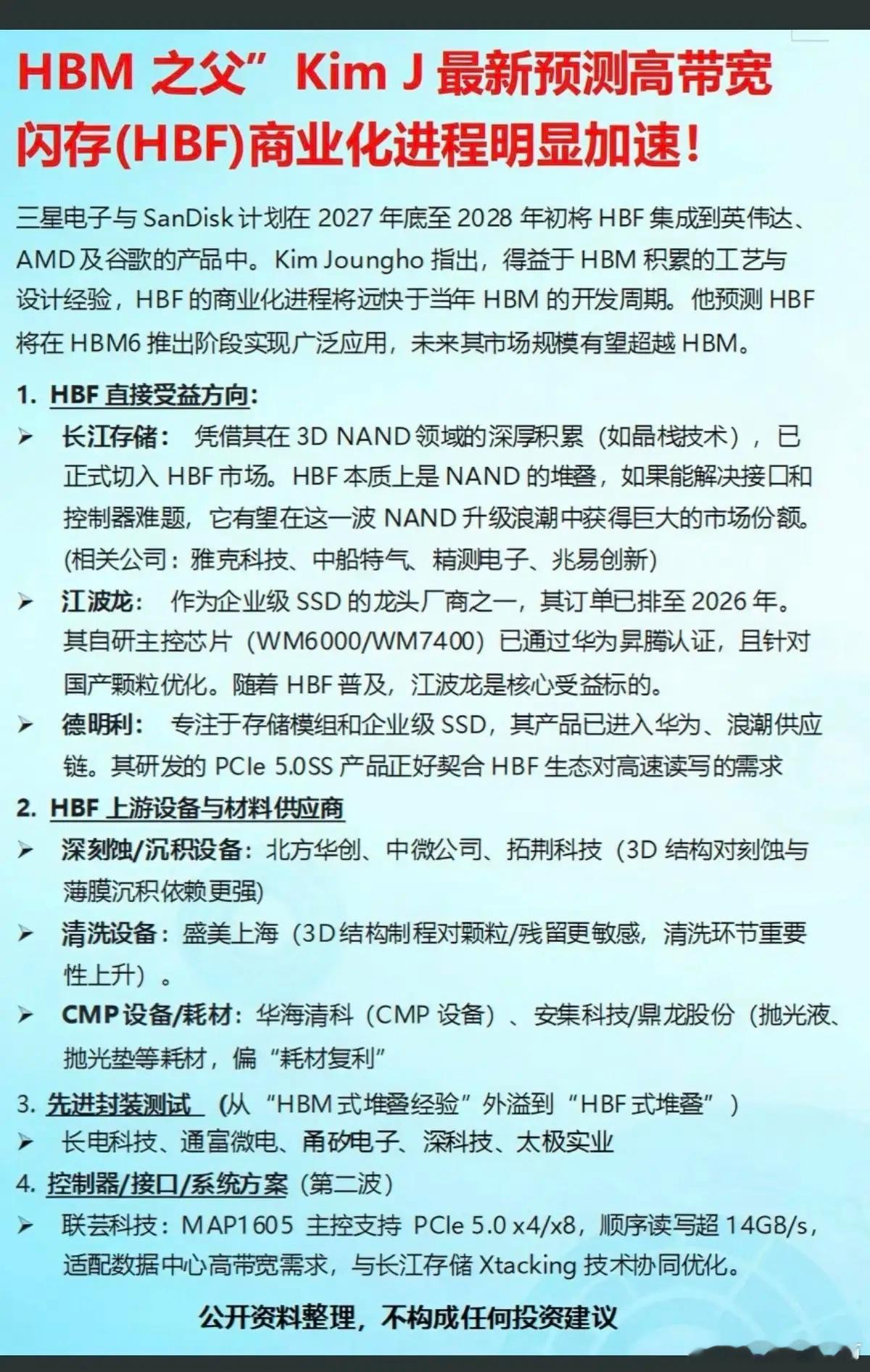 HBM高宽带内存:商业化进程加速!存储芯片涨价需求爆发!相关核心龙头股: