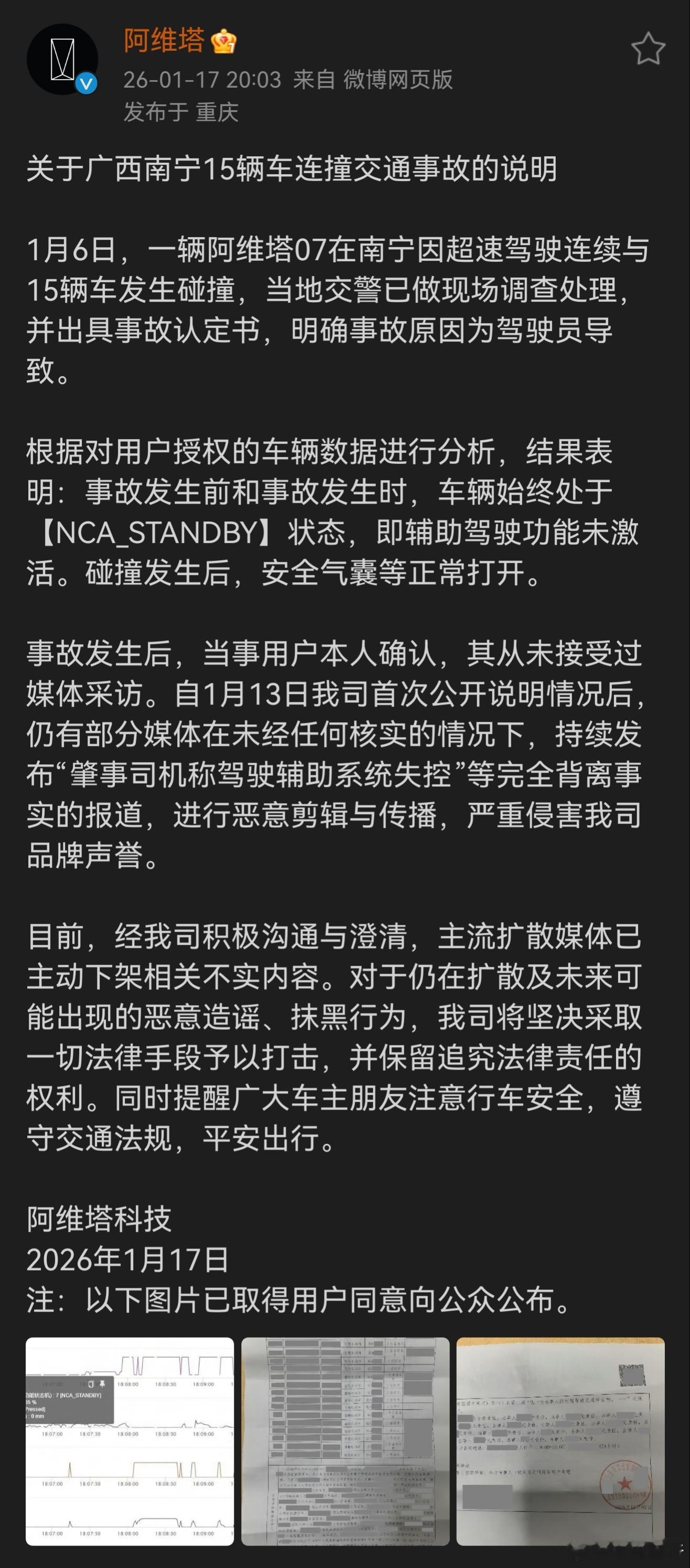 阿维塔关于广西南宁15辆车连撞的说明!某些造谣的人可以歇歇了阿维塔回应南宁15车连撞事故