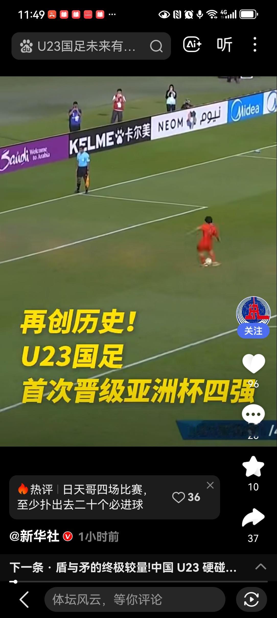 U23创造历史最好成绩! 中国U23男足进入亚洲杯四强。 中国队战胜乌兹别克斯坦队,挺进本届U23亚洲杯四强。 加时赛双方仍然未能攻破对方大门,比赛进入点球大战。中国队最终以4比2成功晋级。点球才是队员实力的表现,真正的功夫就在踢点球上。 门将李昊堪称神勇,多次扑救力保球门不失。 北京时间1月20日晚,中国队将与越南队在半决赛一争高下。盼着他们接着创造奇迹! 历届赛事成绩:前5届U23亚洲杯上,咱就2胜13负,连小组都没出线过。 2013年:小组未出线,3场全负(进2球失5球)。 2016年:小组未出线,3场全负(进4球失9球)。 2018年:小组未出线,1胜2负(进4球失3球)。 2020年:小组未出线,3场全负(进0球失4球)。 2022年:因疫情退赛。 2024年:小组未出线,1胜2负(进2球失4球)。 2026年:晋级四强(小组赛1胜2平零失球,1/4决赛点球胜乌兹别克斯坦)。26 不对比看不出今天的成绩,希望小伙子们百尺竿头更进一步!u23世界杯 中国u22男足