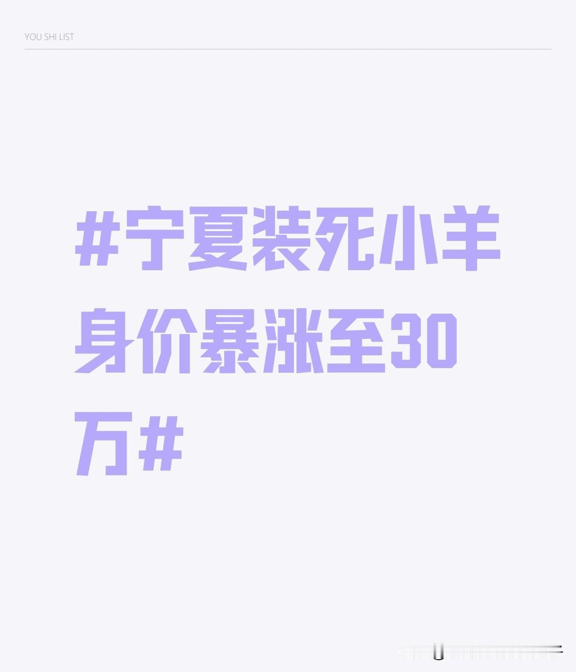 宁夏装死小羊身价暴涨至30万 宁夏有只小羊可太火了!这只小羊身怀“装死绝技”,只要有人靠近或者听到指令,就会立刻倒地,四肢伸直、双眼紧闭,等周围没人了又起身恢复正常。一开始,它因为这“异常反应”成了集市上的“滞销品”,其他三只小羊每只420元都顺利卖出,就它无人问津。 后来主人儿子把它“装死”视频发上网,瞬间成“流量担当”,被网友叫“奥斯卡小金羊”。身价更是一路飙升到30万,暴涨约714倍!不过主人拒绝售卖,还给它取名“羊肉串”。专家说它这不是“演技”,是基因突变的本能反应。现在它成家乡“宣传大使”,主人还想借此推广宁夏农产品呢。