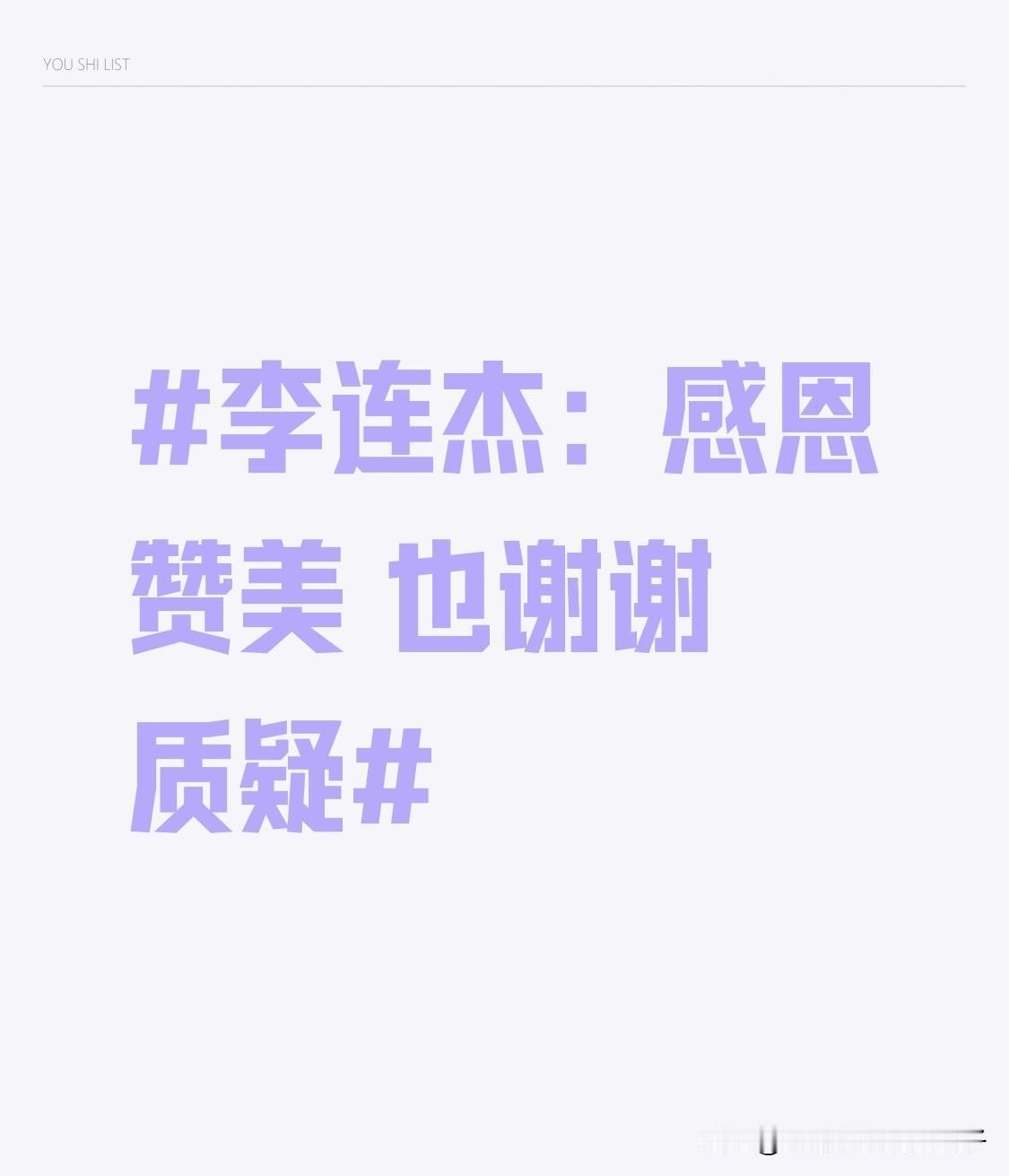 李连杰:感恩赞美 也谢谢质疑 李连杰入驻抖音一天涨粉超140万,这人气简直逆天!他在视频里回应了好多热议话题,说入驻抖音是想和大家探讨武术、电影、公益等,还希望大家都健康快乐,少走弯路,这格局真的大。 最近关于他“老成80岁”的流言传得沸沸扬扬,就因为一张状态不太好的照片。不过后来参加节目的照片显示他状态好多了,还亲自下厨。他出席活动时也正式回应了这传闻,现场幽默说笑,状态不错。李连杰感恩赞美,也谢谢质疑,这份豁达真让人佩服!