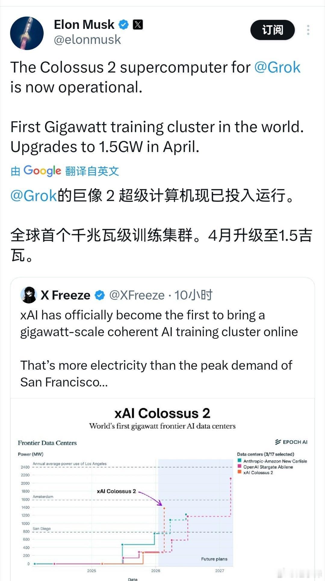 大力出奇迹,全球首个千兆瓦训练集群投入运营,4月升级到1.5吉瓦