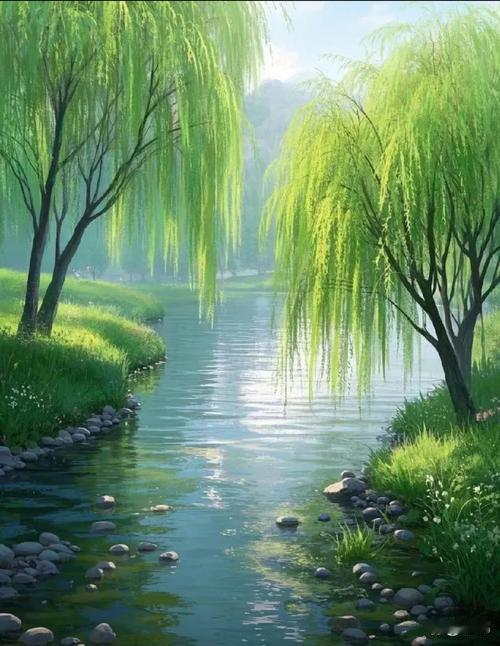 上联:静赏花开诗意满, 下联:闲观柳垂烟水远, 下联:轻吟风动夜光柔。