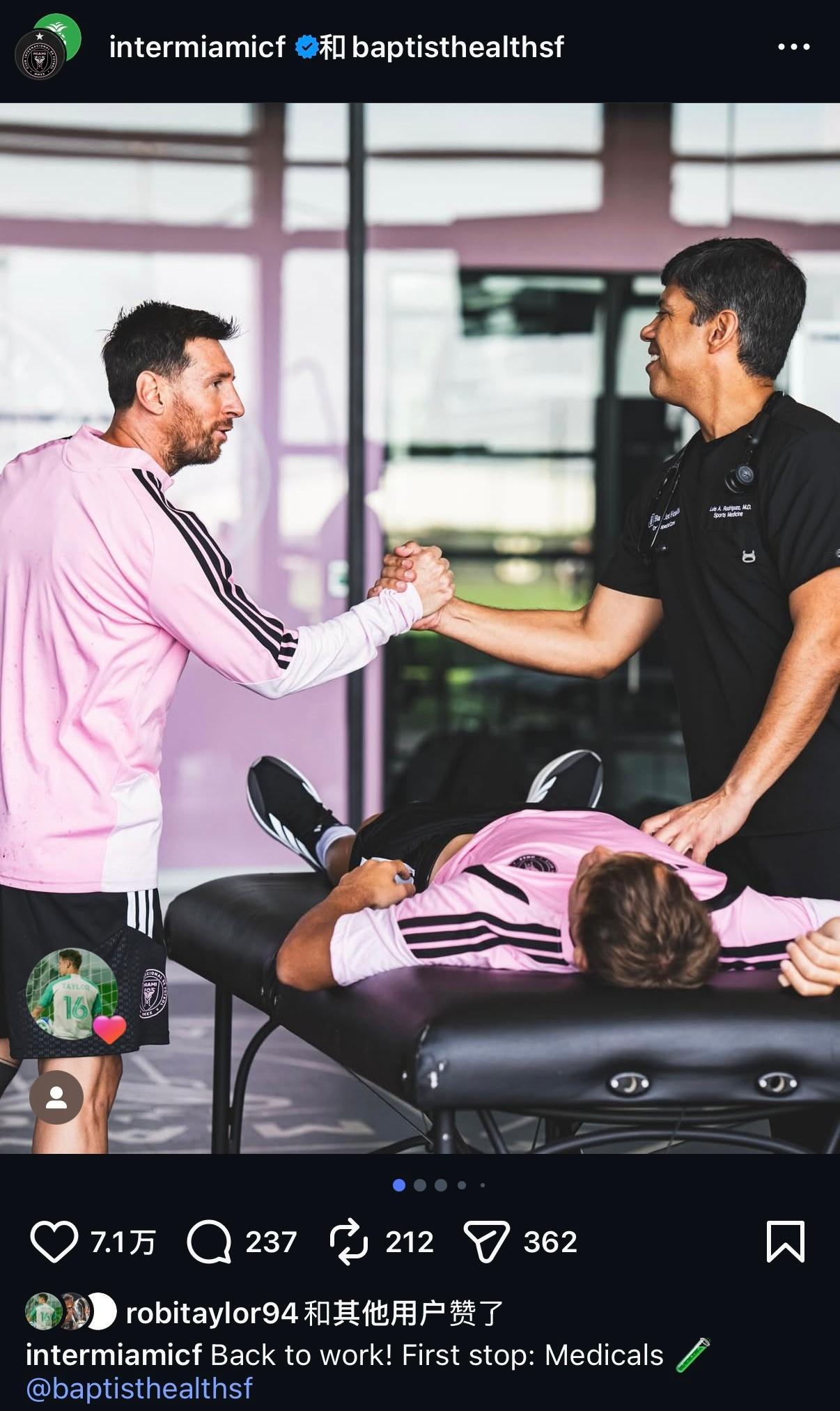 迈阿密官方|重返工作岗位!第一站:体检🧪泰勒点赞❤️迈阿密国际