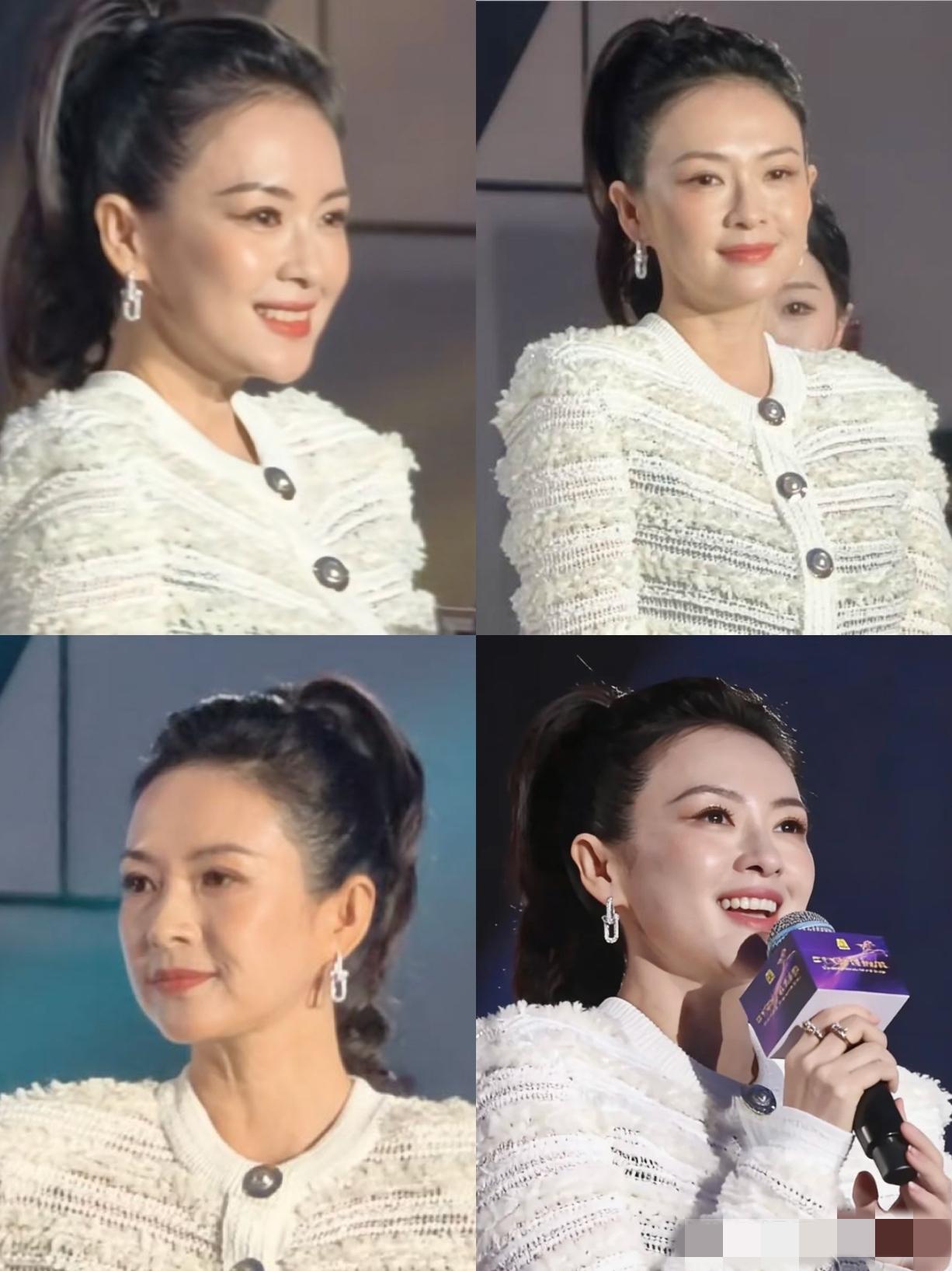 哇塞,章子怡也花容失色了:发际线后移,脑门铮亮,面庞发腮,颈纹一览无余,双下巴明显,下颚线消失不见,法令纹清晰,这状态太拉胯了,毫无精致感可言,看来国际章也逃不过无情岁月的催促哈!