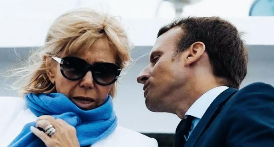 马克龙和妻子布丽吉特是在说什么悄悄话呢? 两人的表情都很严肃啊! 看来是讨论比较重要的事情吧? 布丽吉特戴着墨镜是不是很酷啊?