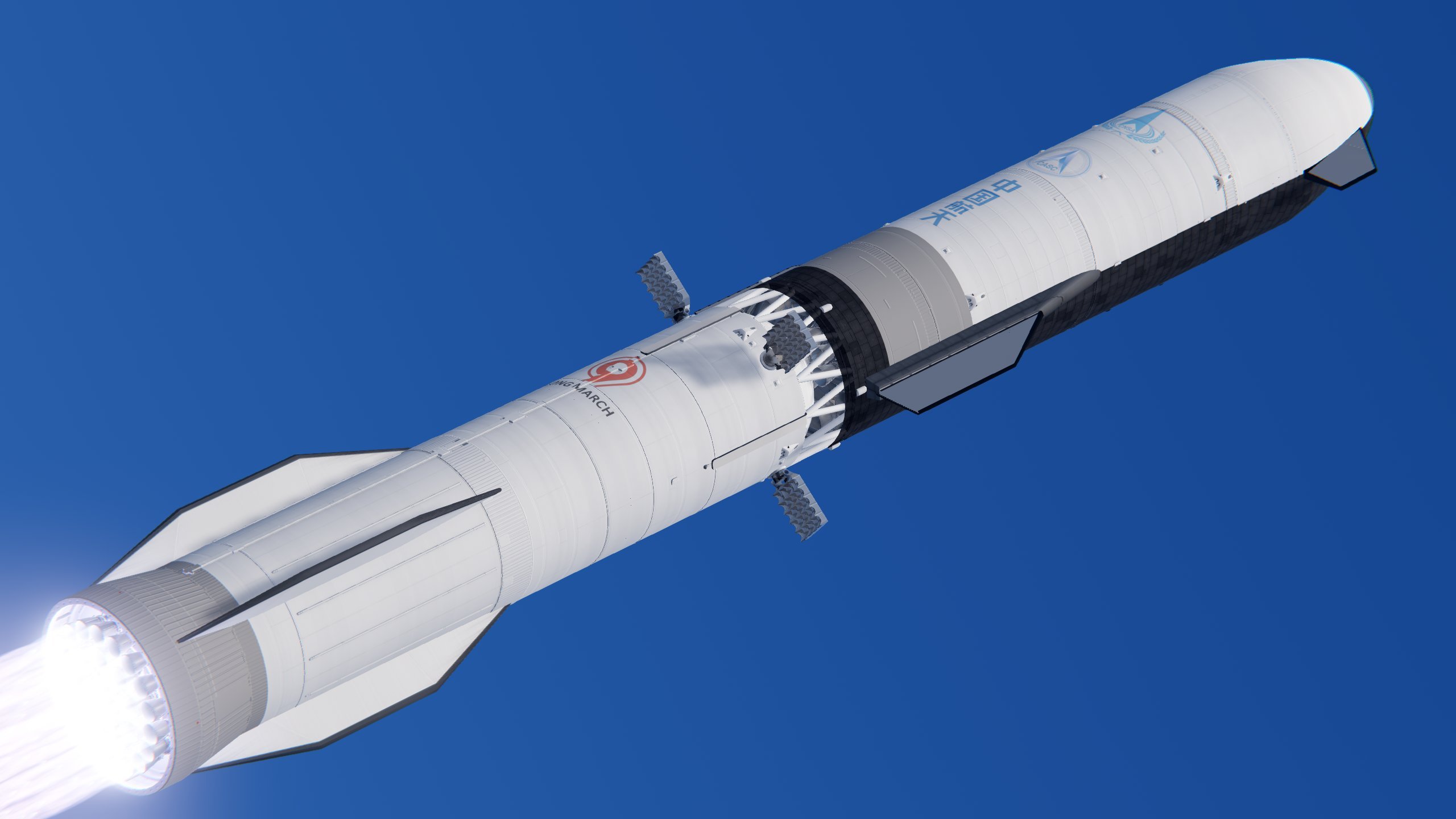 长征九号乙(CZ-9B)运载火箭两级完全重复使用构型,计划于2030年代首飞。(图源X:Truthful_ast)