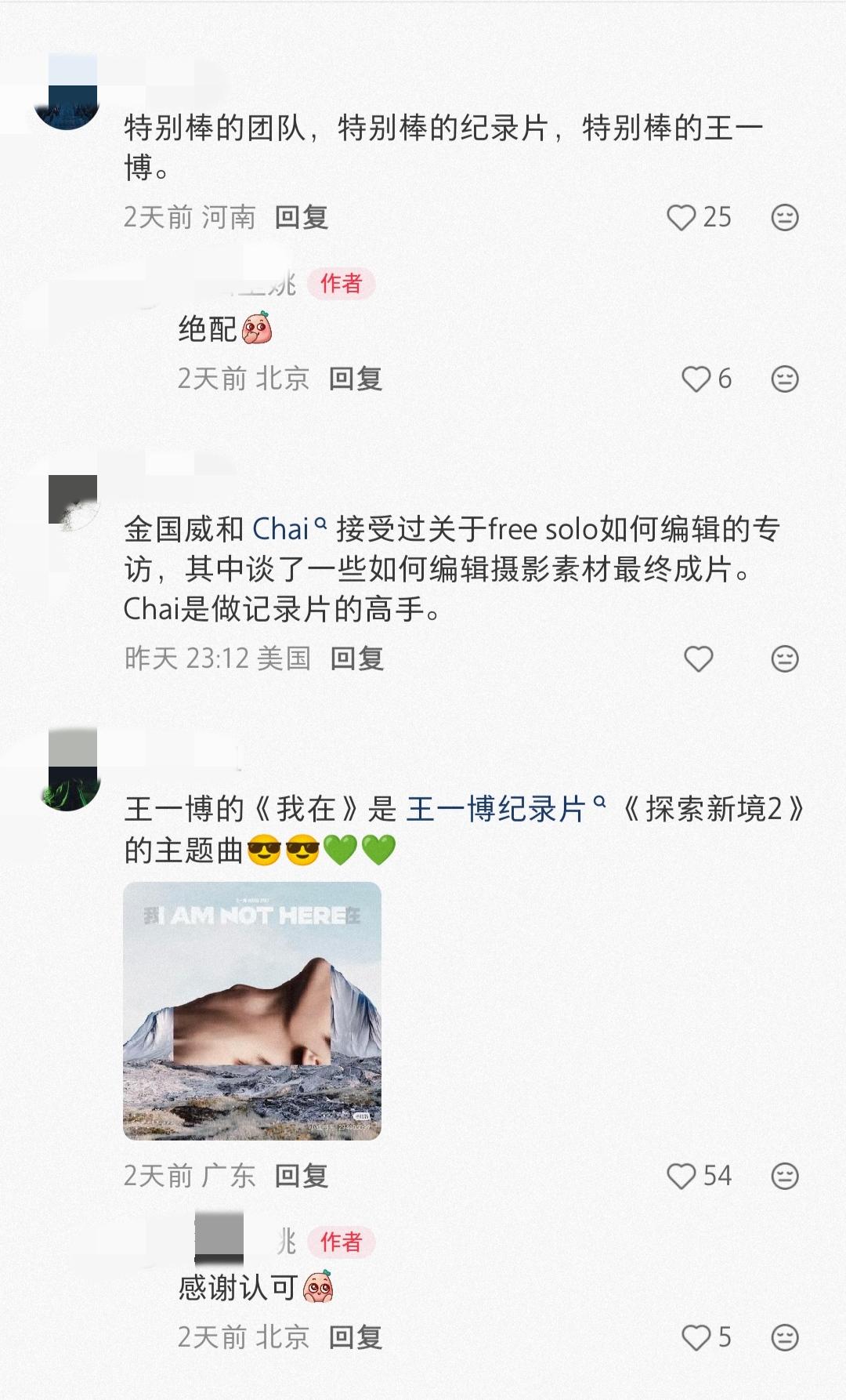 《探索新境2》制片人说:“或许最难的挑战就是优胜美地大结局吧,我们要如何才能给这段前所未有的旅程画上一个足够分量的句号,这种焦虑从第一天一直持续到用了《我在》的那一刻才得到了救赎。” “心入山脉,身落大海,是为我们重逢归来”“你只要不哭,你只要盛开,我就永远不离开”《我在》在探索新境2结尾时响起,真的是救赎也是神来之笔。不知道有多少人在那一刻潸然泪下。没有比用王一博自己的这首《我在》更震撼更契合的结尾曲了,不管是这一路攀登还是内娱这一路荆棘,尽在《我在》这首歌里了,而王一博告诉所有人“我在,我们必会重逢归来”![泣不成声] 一切尽在不言中…… ​王一博 王一博探索新境2