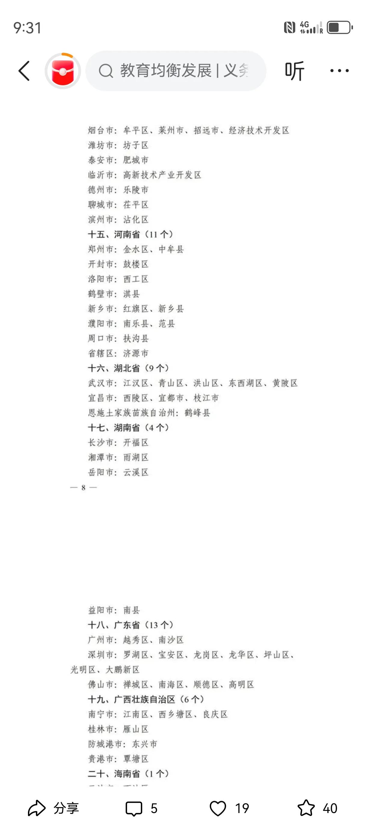 黄冈居然一个没有 看到报道,近日教育部发布了2025年第一批义务教育优质均衡发展县(市、区)认定结果的通知,总共326个县(市、区)为2025年第一批义务教育优质均衡发展县。 湖北省总共有9个县市区入围,总量偏少。作为教育均衡性发展的代表地区黄冈市,居然没有一个县市区能够入围,看来在义务教育这一块,黄冈市的均衡性还不够,加油,黄冈!
