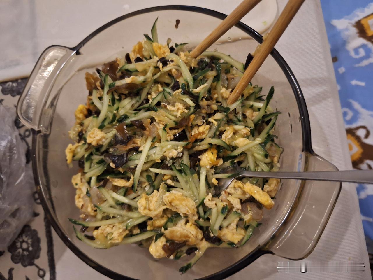 零下23度,好冷啊。周末就不出去了,因为醒得比平时还早,包饺子吧。先和面,让面“醒”的时候,黄瓜切丝,虾仁和木耳切碎,再炒鸡蛋,调出来的馅鲜美可口。看到网上说连云港房投集团给业主发信息,温馨提示“气温将下降到-482度”,天呐,该集团练就旷世神功要再造宇宙啊?要知道“绝对零度”才-273度,宇宙大爆炸前就是