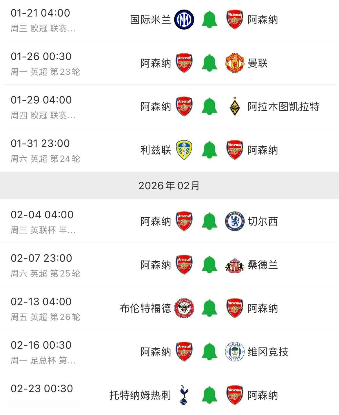 对比一下Top4截止到2月底的赛程,曼城和利物浦的赛程并不轻松,我们次之,维拉的对手相对容易些!阿森纳诺丁汉森林0比0阿森纳英超联赛
