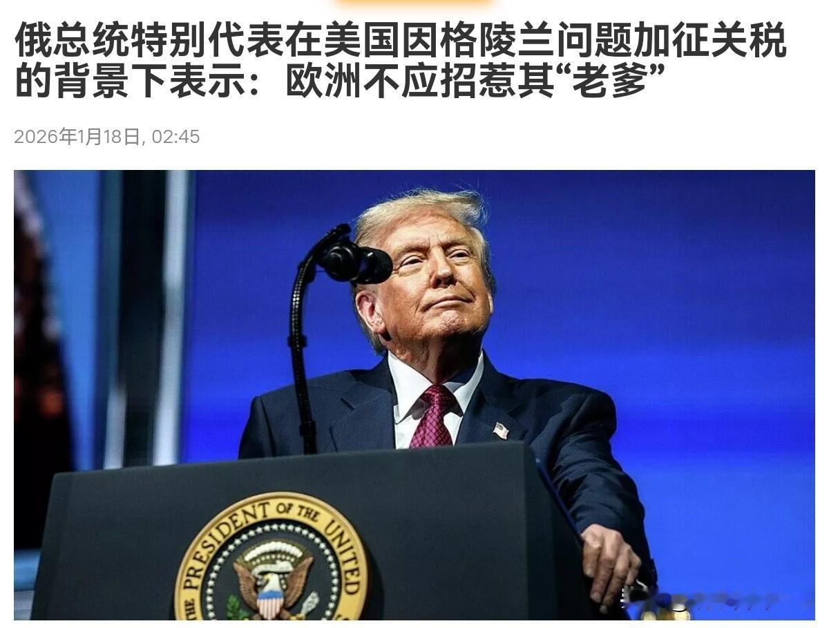 看见美国对保护格陵兰的欧洲八国加关税,俄罗斯做梦都会笑醒!1月18日,根据俄媒报道,俄总统特别代表德米特里耶夫对此表示,特朗普因他们向格陵兰岛派兵的‘危险游戏’将对英国、丹麦、法国、德国、芬兰、荷兰和挪威加征10%的关税,自6月1日起提升至25%。这大约相当于每向格陵兰派遣一名士兵就加征1%的关税。欧洲不应该招惹他们的“老爹”。 很显然,对于特朗普这样对待欧洲,俄罗斯真是做梦都会笑醒。现在欧洲还在支持乌克兰,结果美国和欧洲又在格陵兰岛上较劲。这对于欧洲而言,就没有比这更加糟糕的局面了。援乌,成为了欧洲沉重的包袱不说,现在特朗普背后“捅刀子” ,美欧裂痕越来越大,俄罗斯面对的压力就更小了。 现在欧洲面临的就是一个二选一,要么看着美国吞并格陵兰,要么跟美国打一场贸易战。不管结果如何,对俄罗斯而言,这就是二虎相争,坐山观虎斗。当然,恐怕让美国吞并格陵兰更不能让欧洲接受。如果这种破坏国际法的行为,欧洲都默许,纵容,欧洲有什么理由反对俄罗斯呢?某种程度来说,特朗普简直对俄罗斯送了一份大礼。