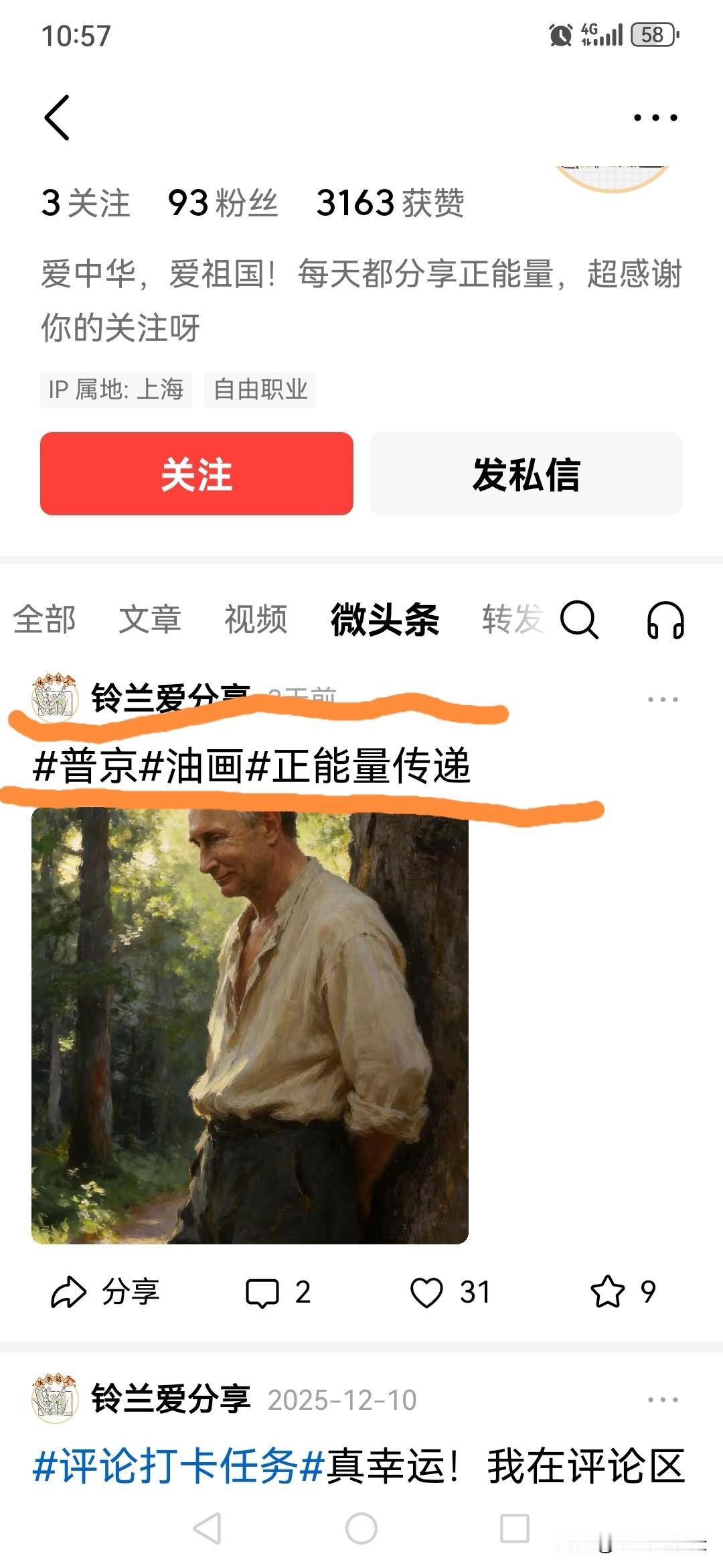 中国人爱中国是本份,但是其中有一类东西,却始终爱的是侵占了中国大量领土的俄国,并把发一张俄国当代XX头子的照片,自称为传递正能量。它们虽然身在中国,心却在俄国,已经完全失去了作为中国人的本份之心。真XX的奇葩,它们到底是一类什么样的东西?