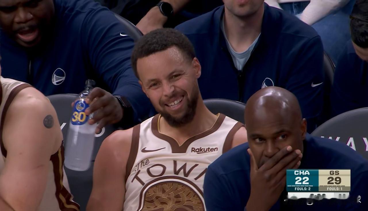 勇士老将库里真是太让人心疼了!在今天勇士主场迎战黄蜂的比赛中,当时比赛进行到了第一节的3分20秒,勇士以29:22领先对手7分,此时转播镜头给到了勇士的替补席,只见刚刚被替换下场休息的库里累的呲牙咧嘴,虽然库里在第一节比赛中得分不高,但是他在场上遭到了对手的严防死守,这让37岁的库里感到非常的疲惫,让人看着好不心疼。