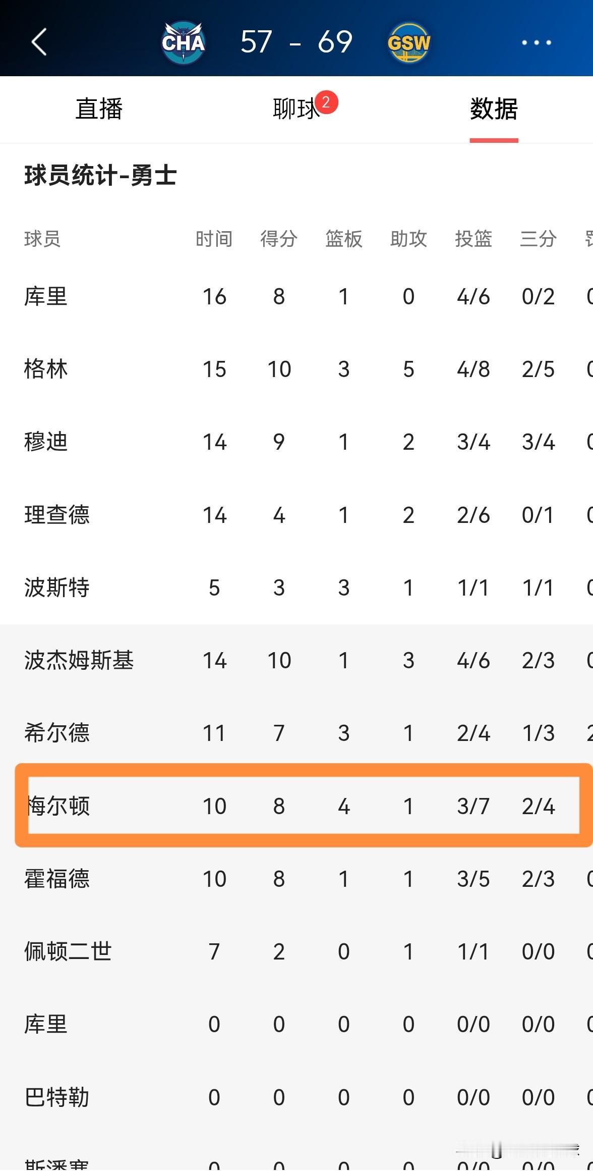 勇士真是赚大了!在今天进行的勇士和黄蜂的比赛中,目前双方半场战罢,勇士以69:57领先对手。在前两节比赛中,大将梅尔顿再次打出了非常出色的表现,他在替补出战的10分钟里,投篮7中3,其中三分球4中2得到8分,还有4篮板1助攻,没有出现失误,他的场上正负值为+5。 毫不夸张的说,梅尔顿绝对是勇士阵中性价比最高的球员,并且没有之一,勇士能够得到梅尔顿这样攻防兼备的好球员真是赚大了。