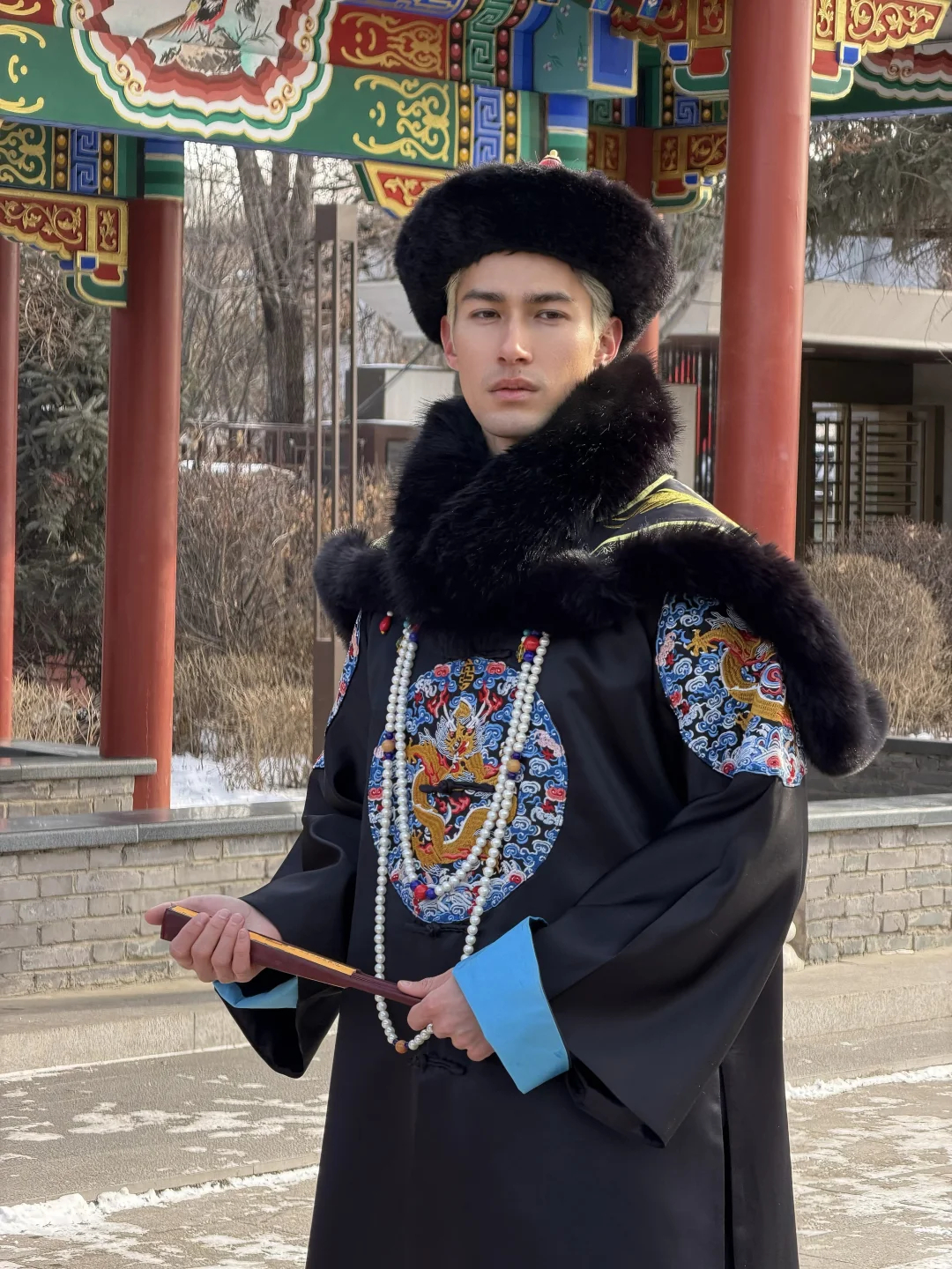 米卡带爸爸去沈阳玩了,他一老外,怎么穿古装还是挺适合的?