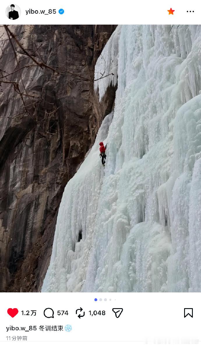 王一博冬训结束王一博晒攀冰照王一博 Instagram 更新!冬训结束晒攀冰照,状态满分超亮眼